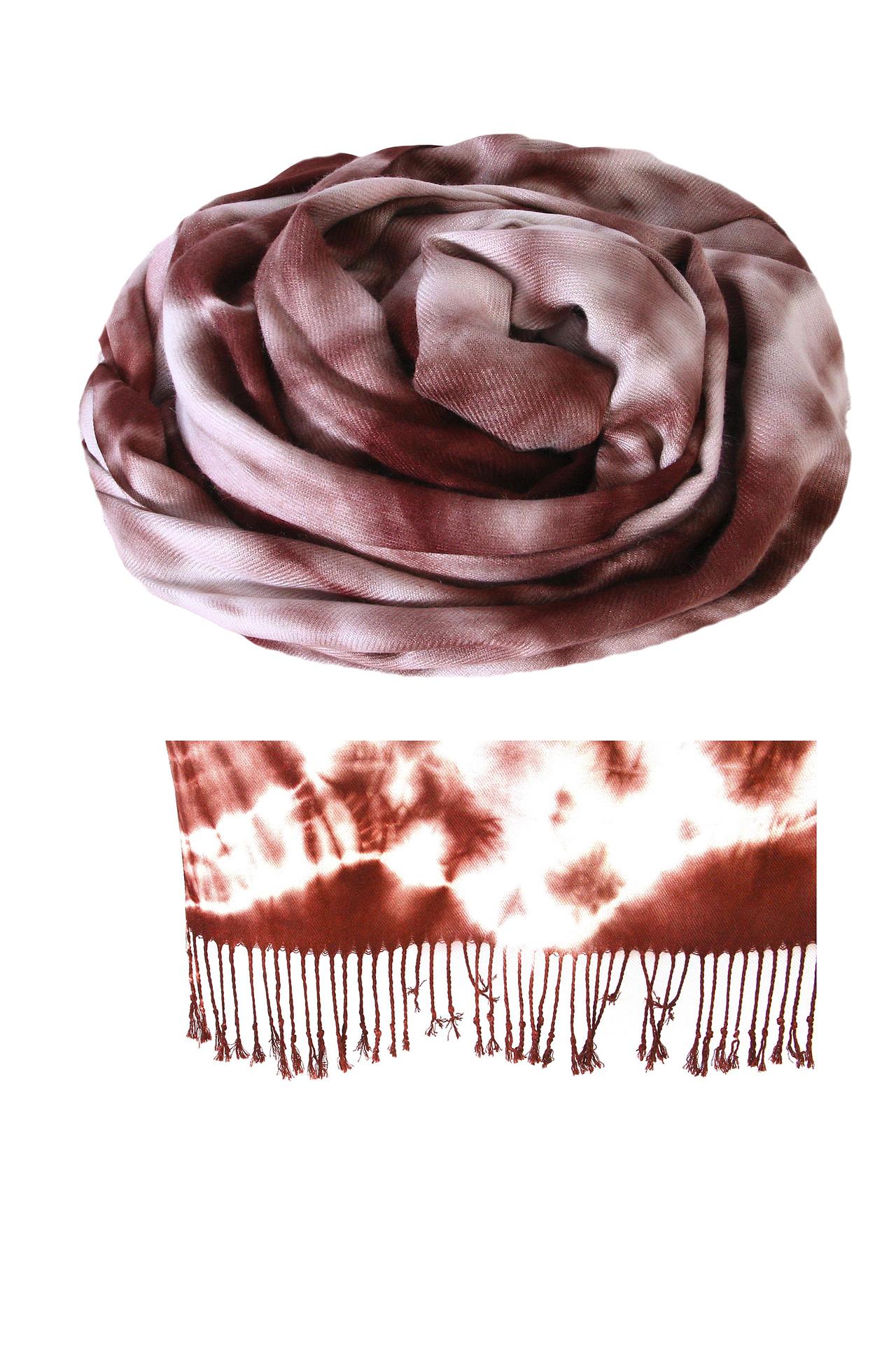 Палантин MYLIKE бордово-розовый тай-дай с бахромой