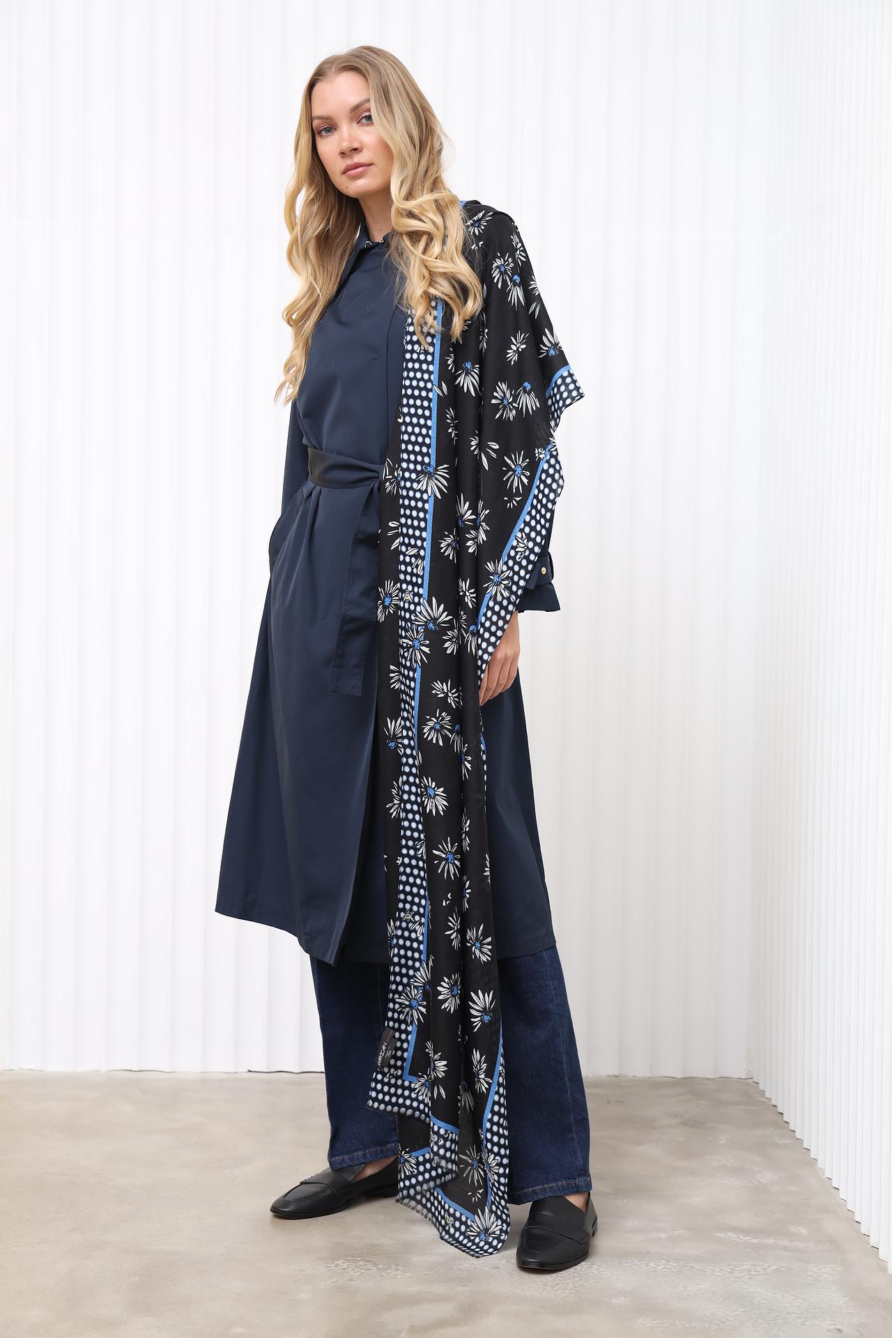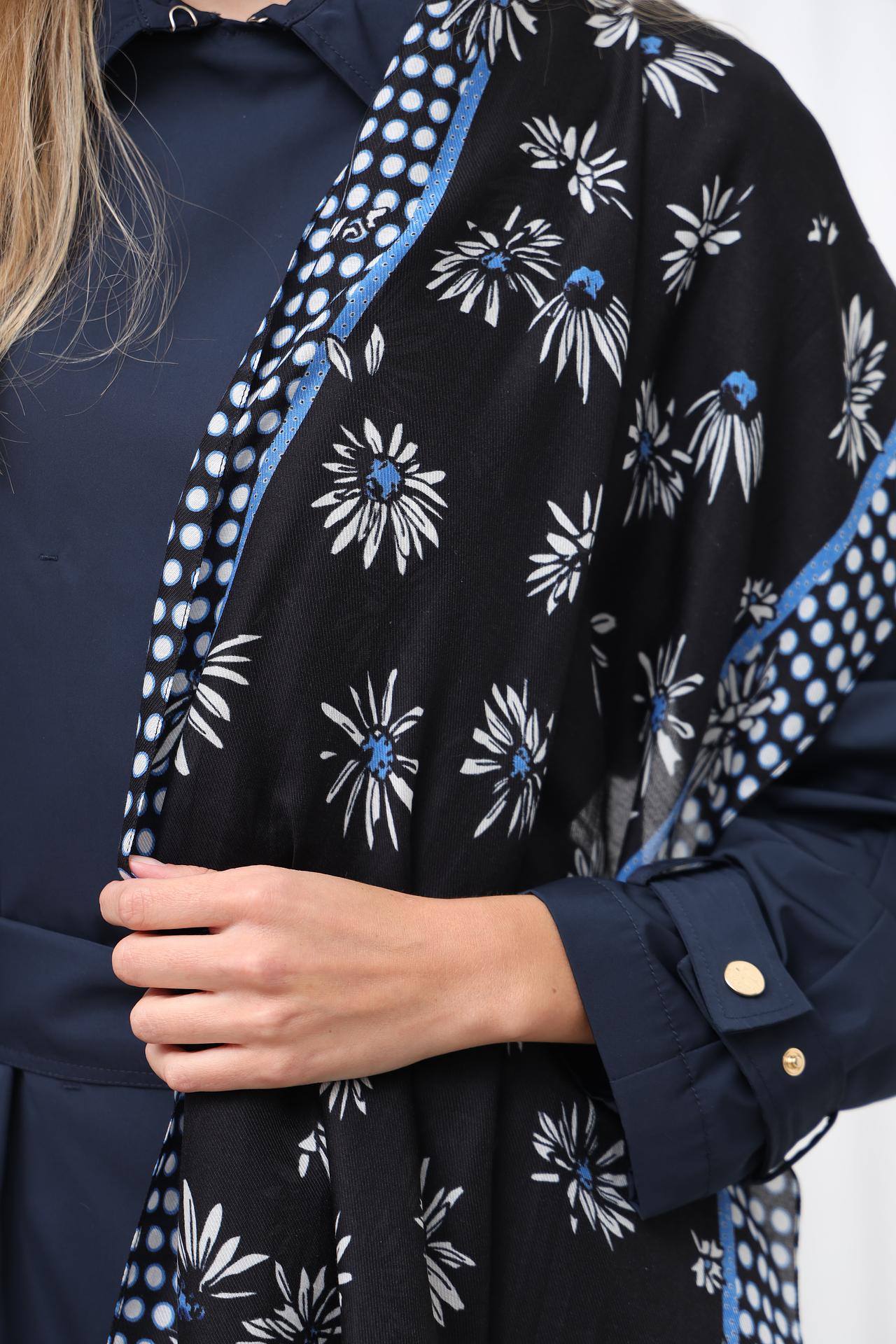 - Элегантный дизайн: Цветочный принт и изысканные детали делают этот платок стильным аксессуаром.
