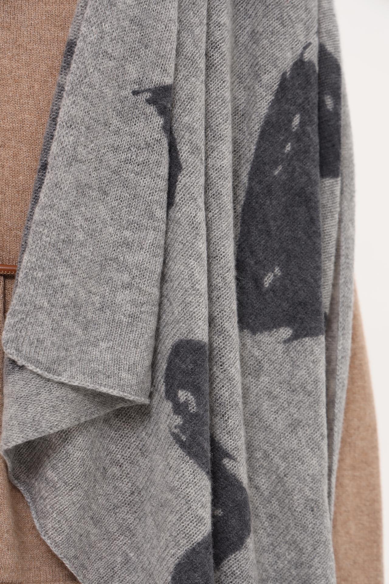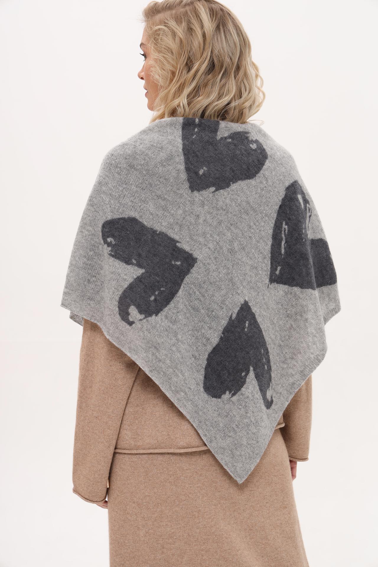 - Дизайн: Эффектный серый платок с контрастным принтом в виде сердец, который добавит изюминку вашему стилю.