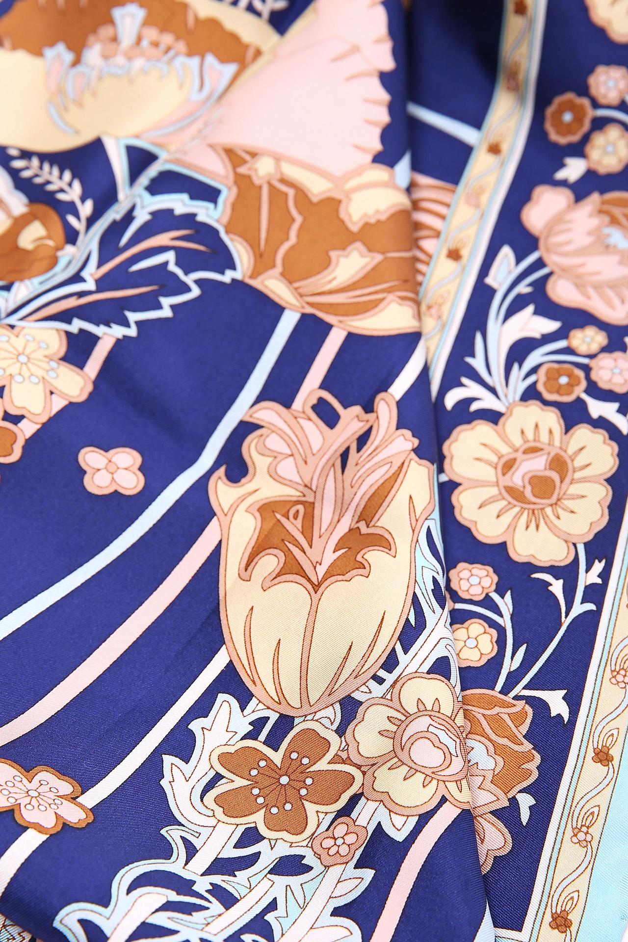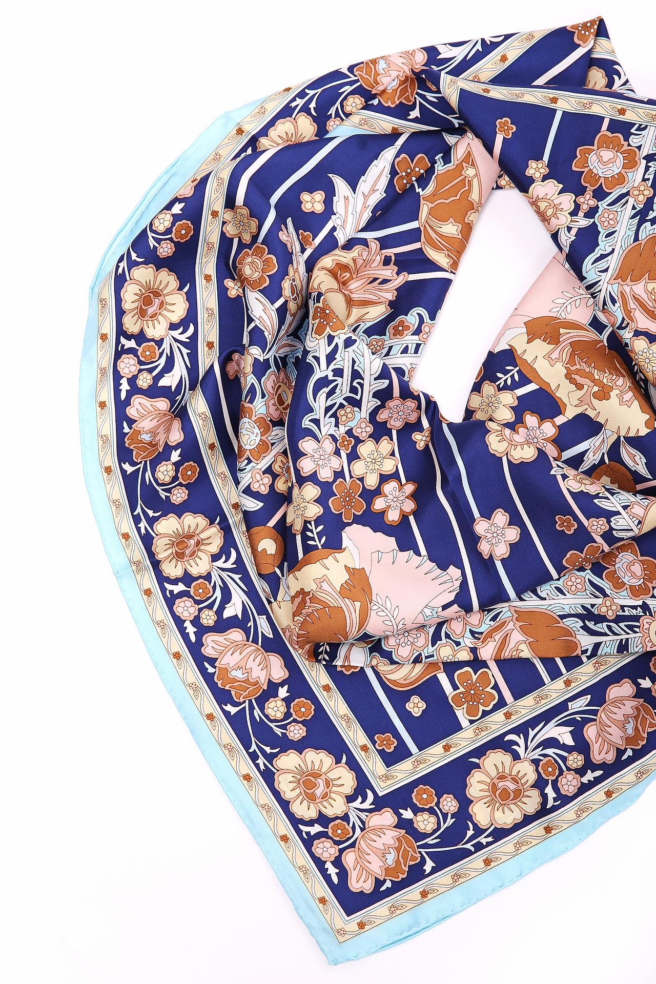 Изысканный шелковый платок Just Valeri станет прекрасным дополнением вашего образа. Нежный цветочный рисунок на синем фоне придает шарм и элегантность. Платок из 100% шелка приятен на ощупь и идеально подходит для любого времени года.