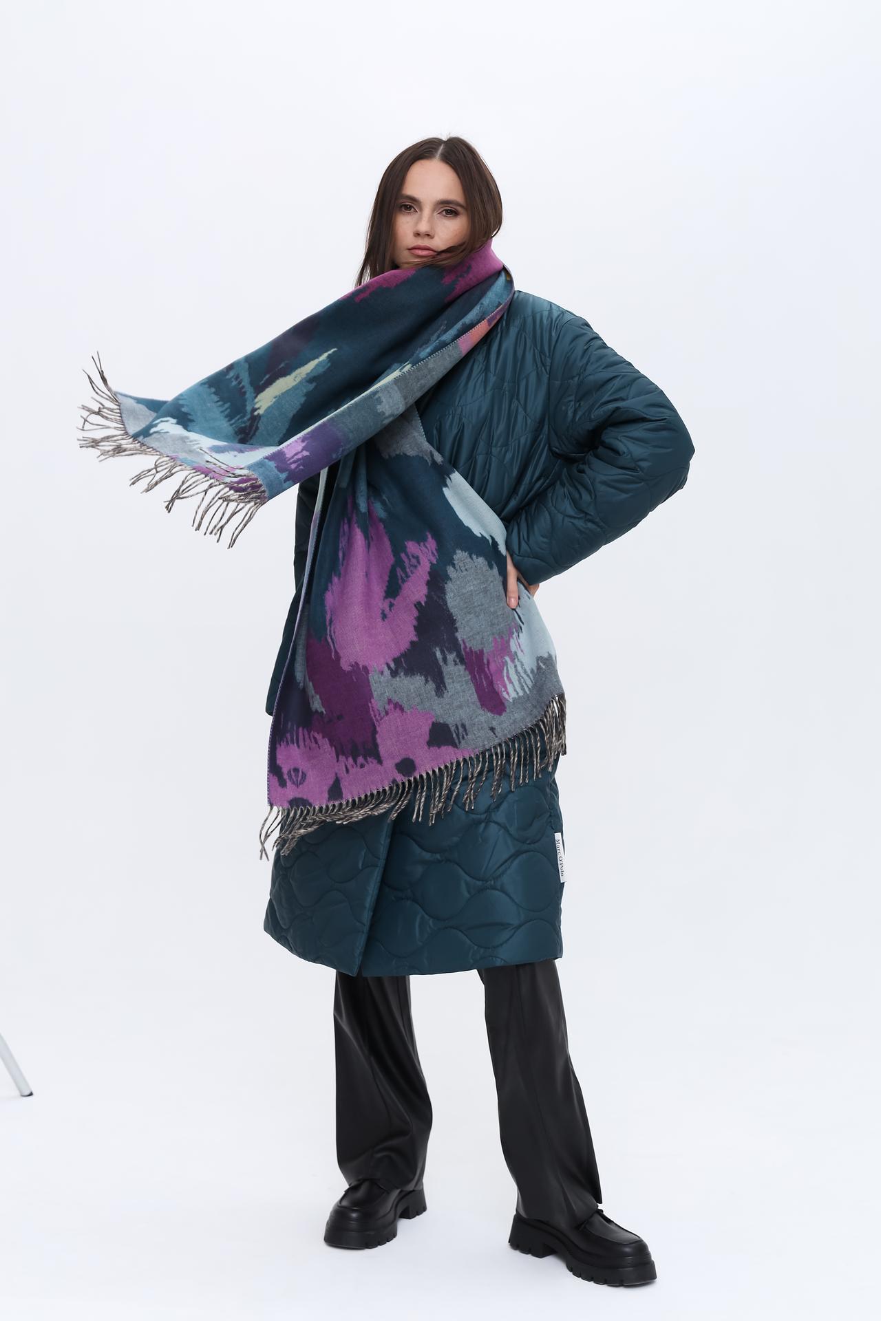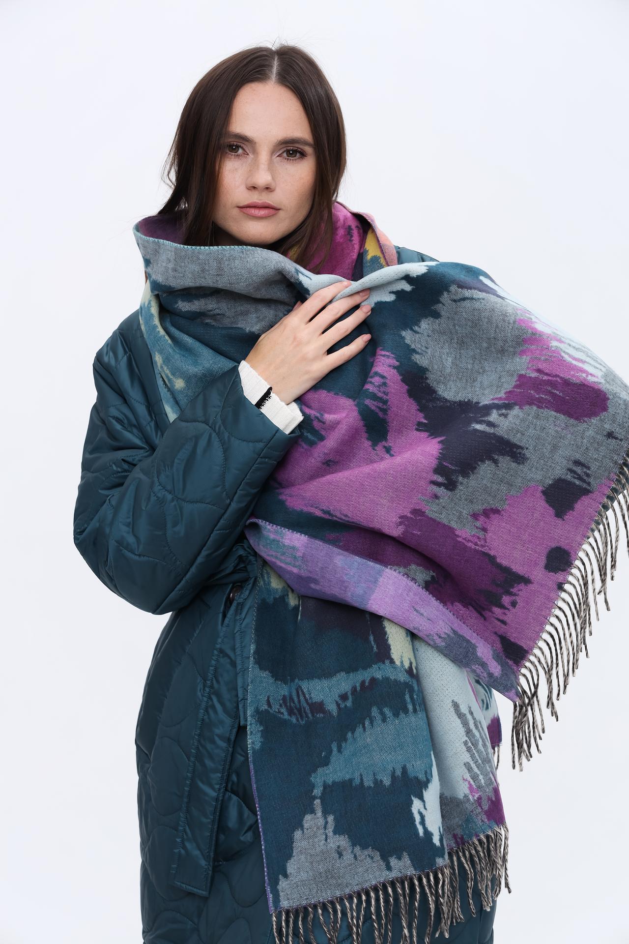 - Универсальность. Благодаря своему размеру и рисунку, шарф идеально подходит для различных стилизаций – его можно носить как классический шарф, уютный палантин или стильный накидку, дополняя как повседневный, так и элегантный образ.