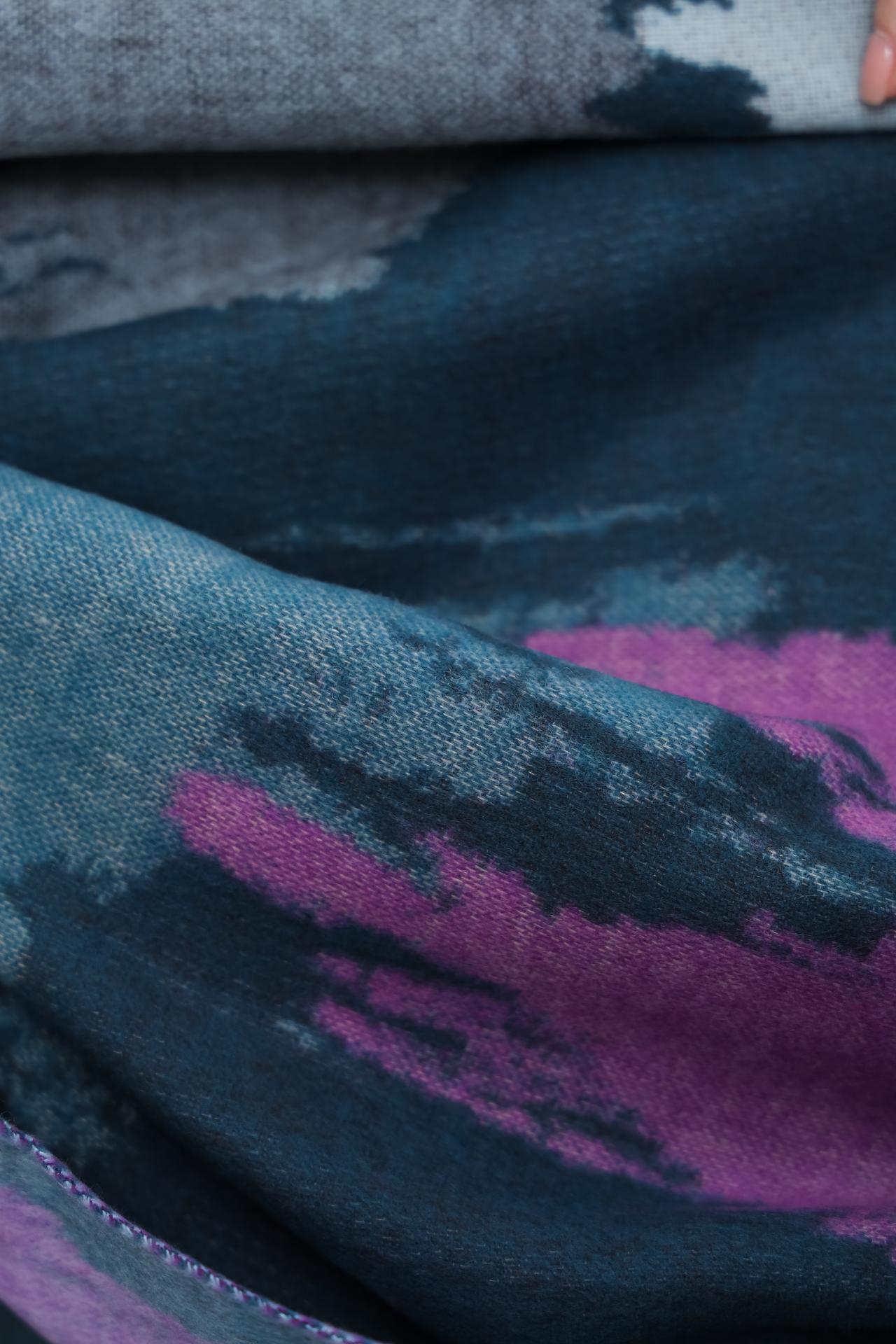 - Уникальный дизайн. Отличается выразительным абстрактным принтом, который гармонично сочетает глубокие оттенки синего, фиолетового, серого и голубого. Дизайн придает аксессуару современный и динамичный вид.