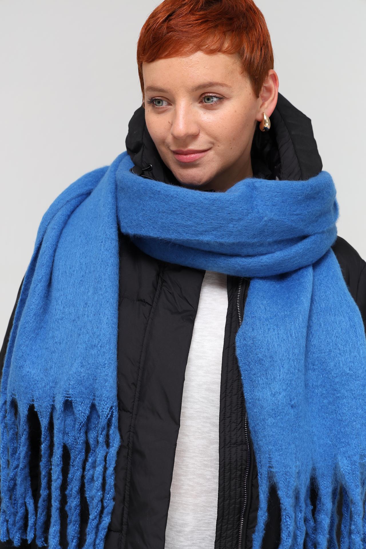 Шарф Electra style синий с бахромой