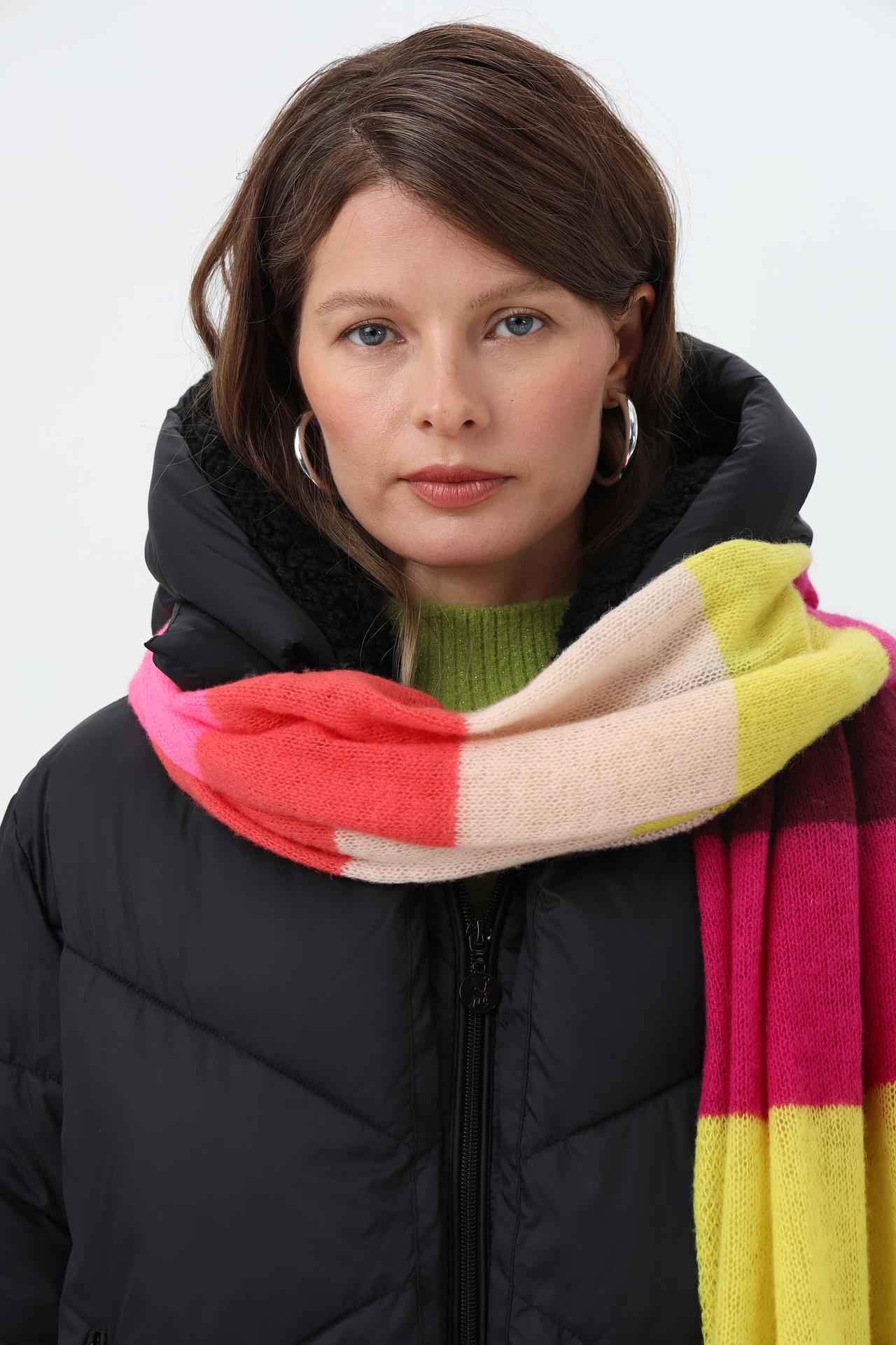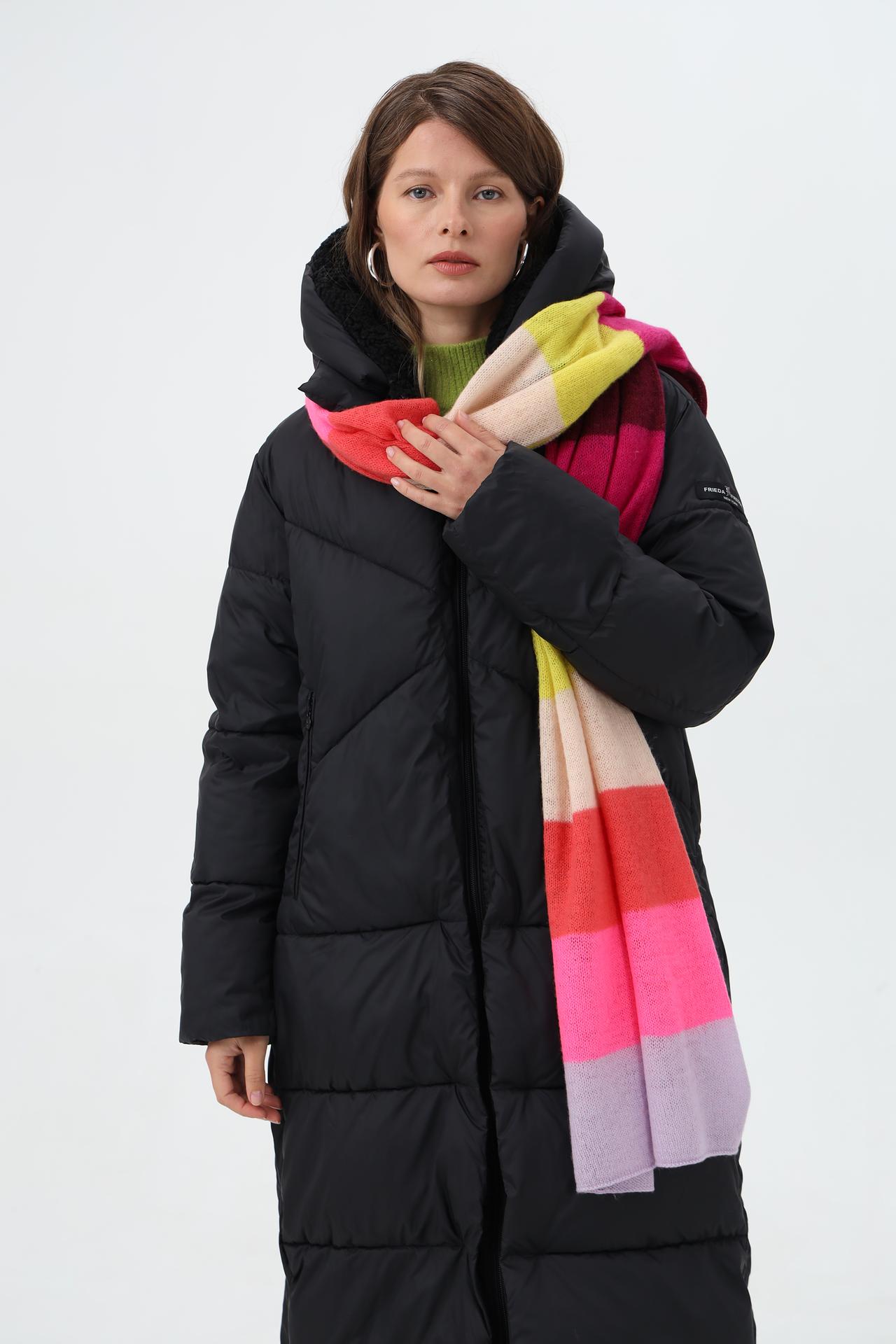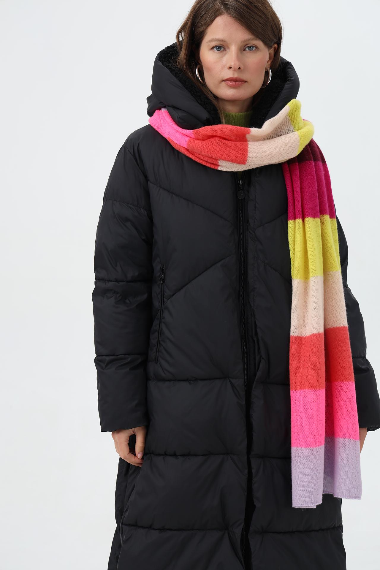 Мягкий и теплый шарф из 100% шерсти от Fraas станет идеальным дополнением к вашему зимнему образу. Яркие полосы в розовых, желтых, коралловых и сиреневых тонах поднимают настроение и добавляют акцент.