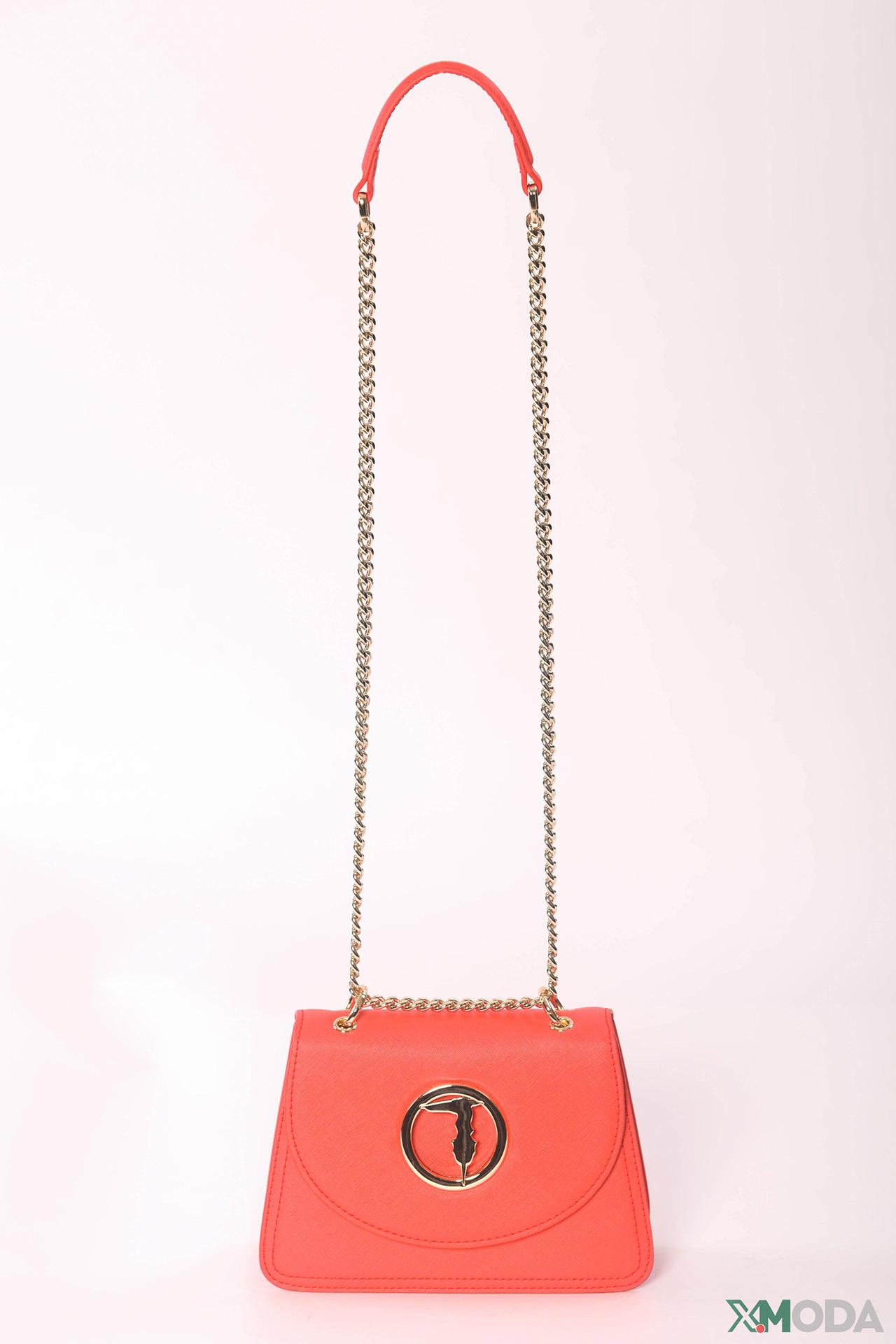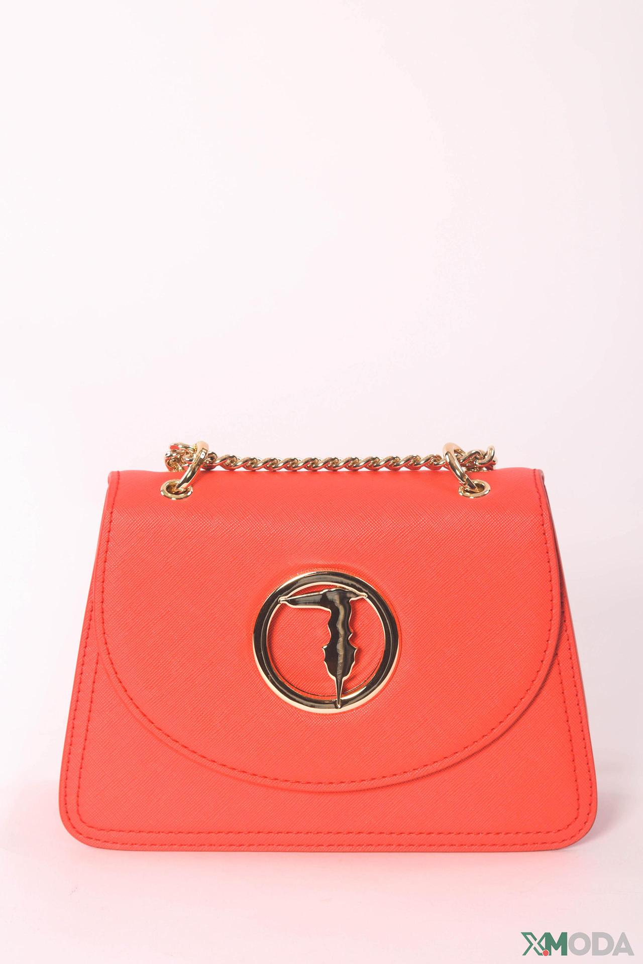 Красная сумка Trussardi Jeans с золотым логотипом