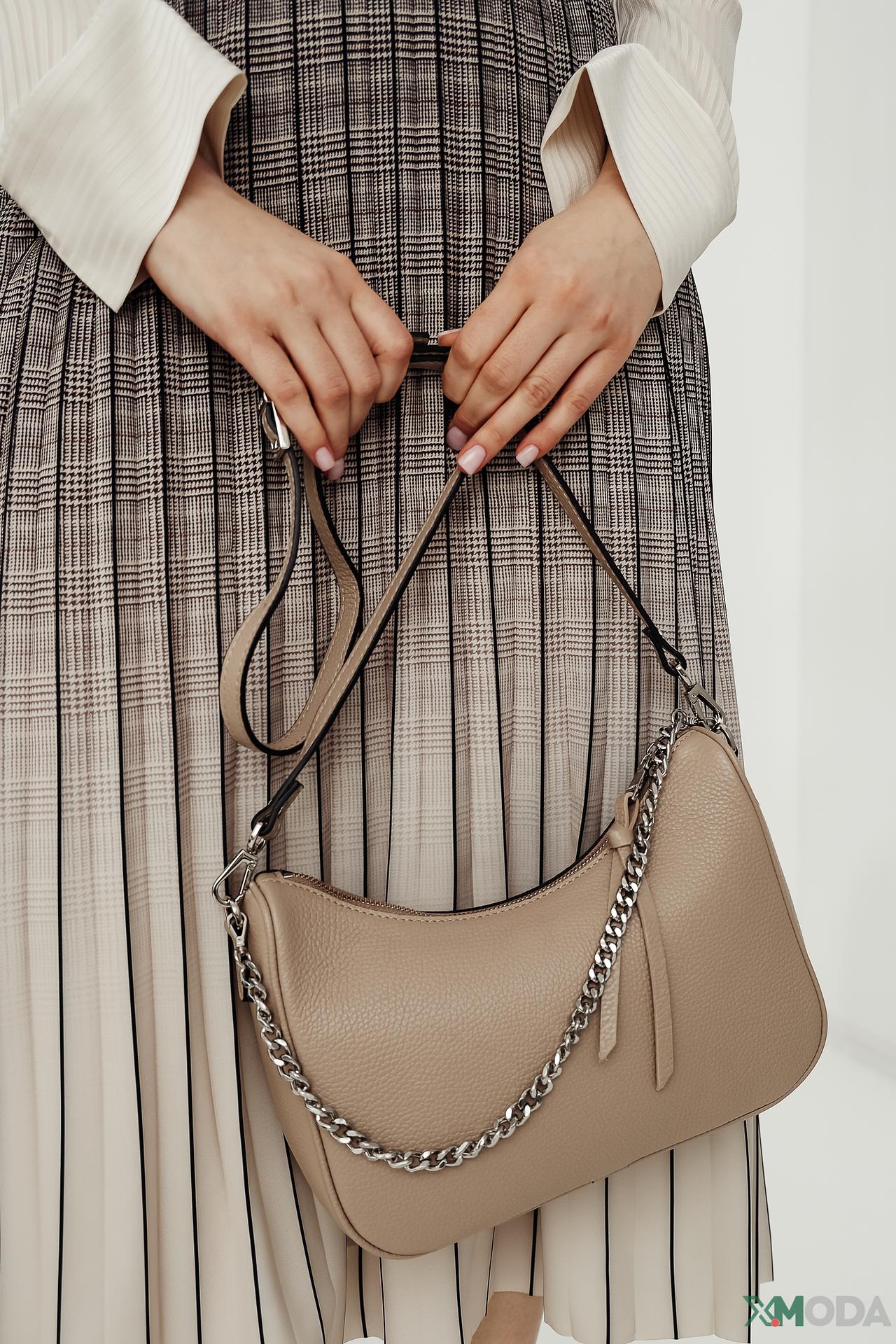 - Универсальный дизайн: Классическая форма багетной сумки, дополненная современной декоративной цепочкой серебристого цвета, позволяет легко интегрировать ее в любой стиль. Это идеальная сумка для женщин, ценящих элегантность и функциональность.