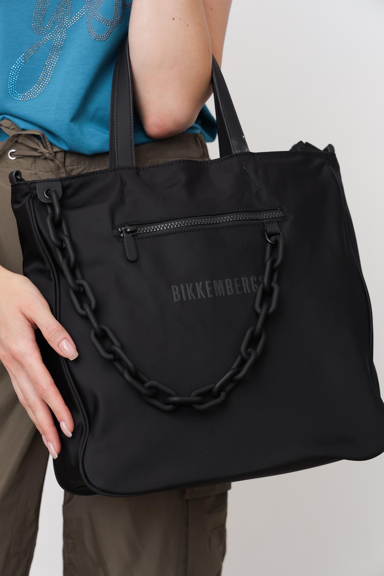 Стильная и практичная сумка Bikkembergs — идеальный выбор для современной женщины, ценящей комфорт и элегантность. Аксессуар выполнен из 100% нейлона, что обеспечивает легкость, прочность и устойчивость к влаге. Черный цвет и минималистичный дизайн делают эту сумку универсальной, подходящей к любому образу, от повседневного до вечернего. Массивная декоративная цепь придает модели смелый и модный акцент.