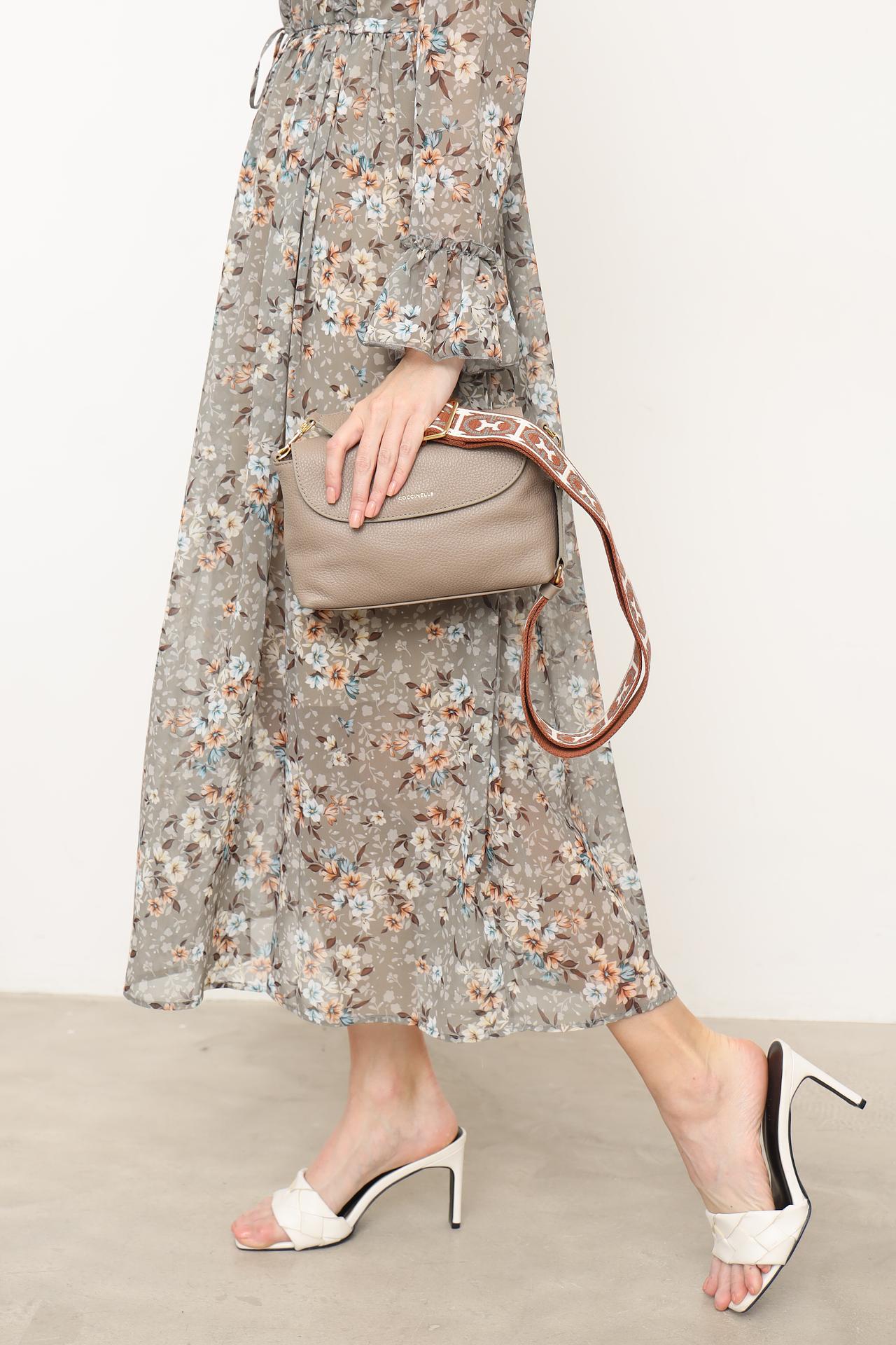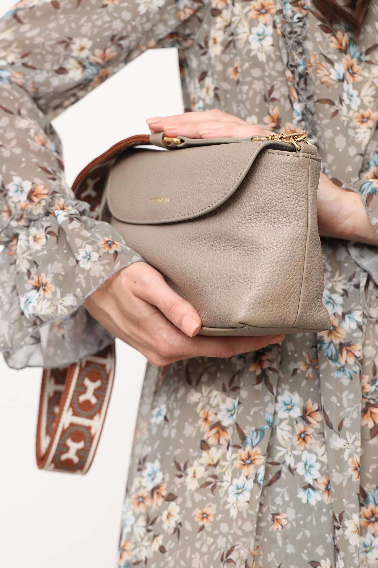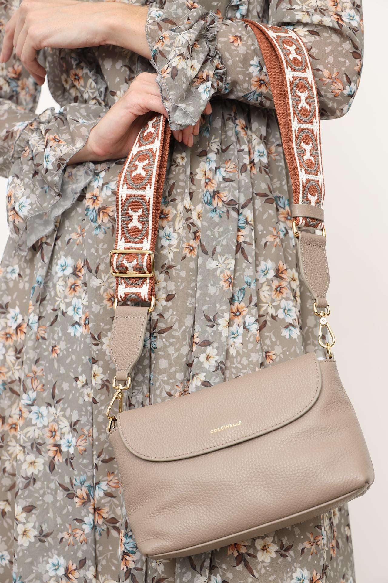 Сумка Coccinelle кожаная цвета тауп с текстильным ремнем