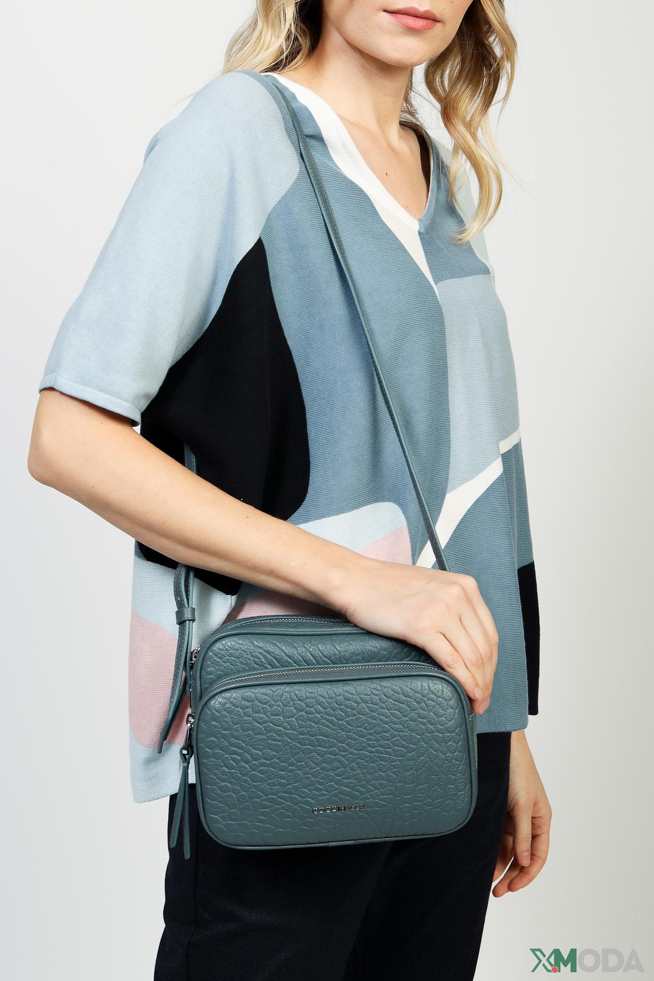Сумка Coccinelle зелёная кожаная с серебристой фурнитурой