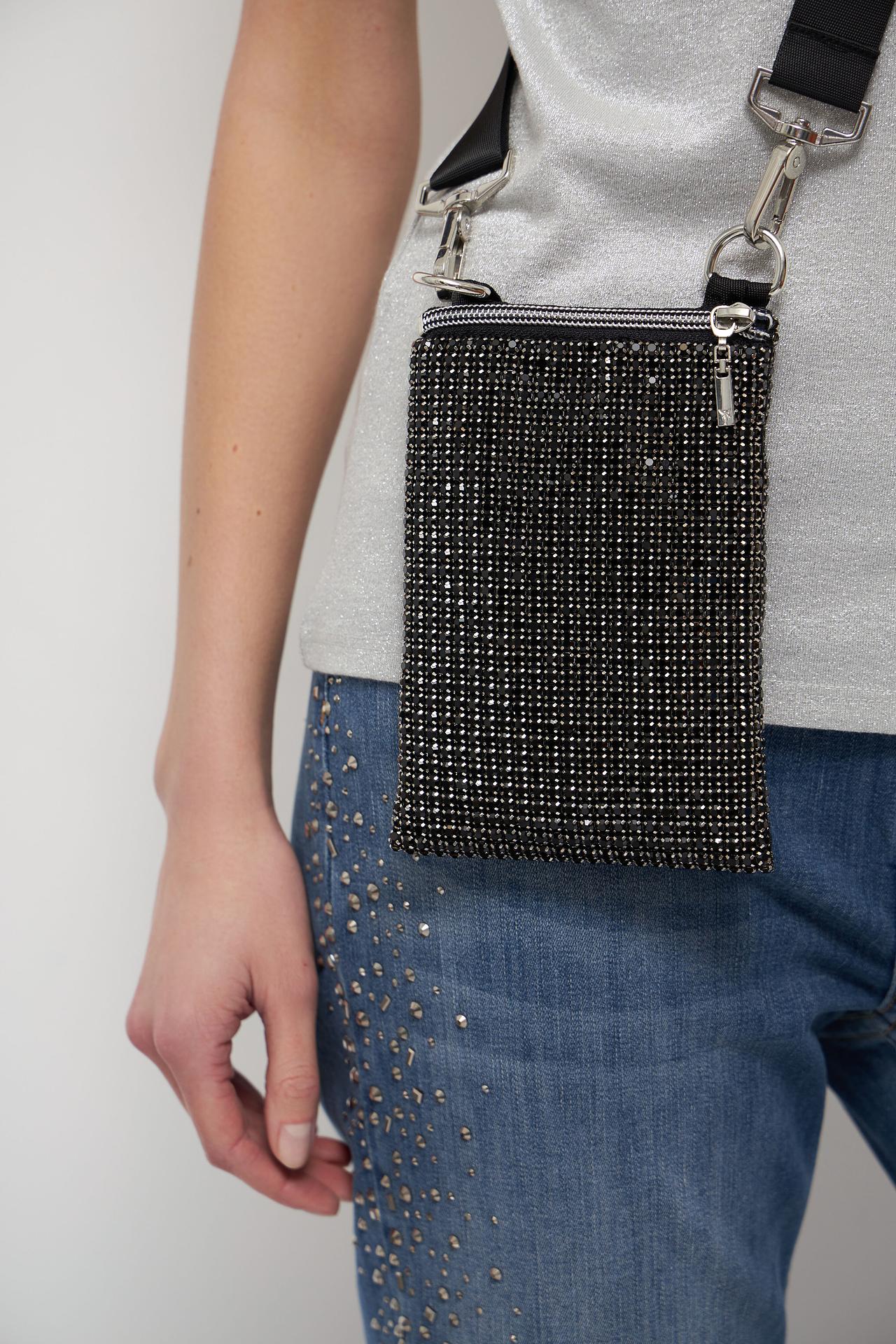 Стильная сумка Monari, декорированная сверкающими стразами, станет эффектным дополнением к вашему образу. Благодаря компактному размеру и регулируемому ремню, она идеально подходит для хранения телефона и других мелочей, оставаясь всегда под рукой.
