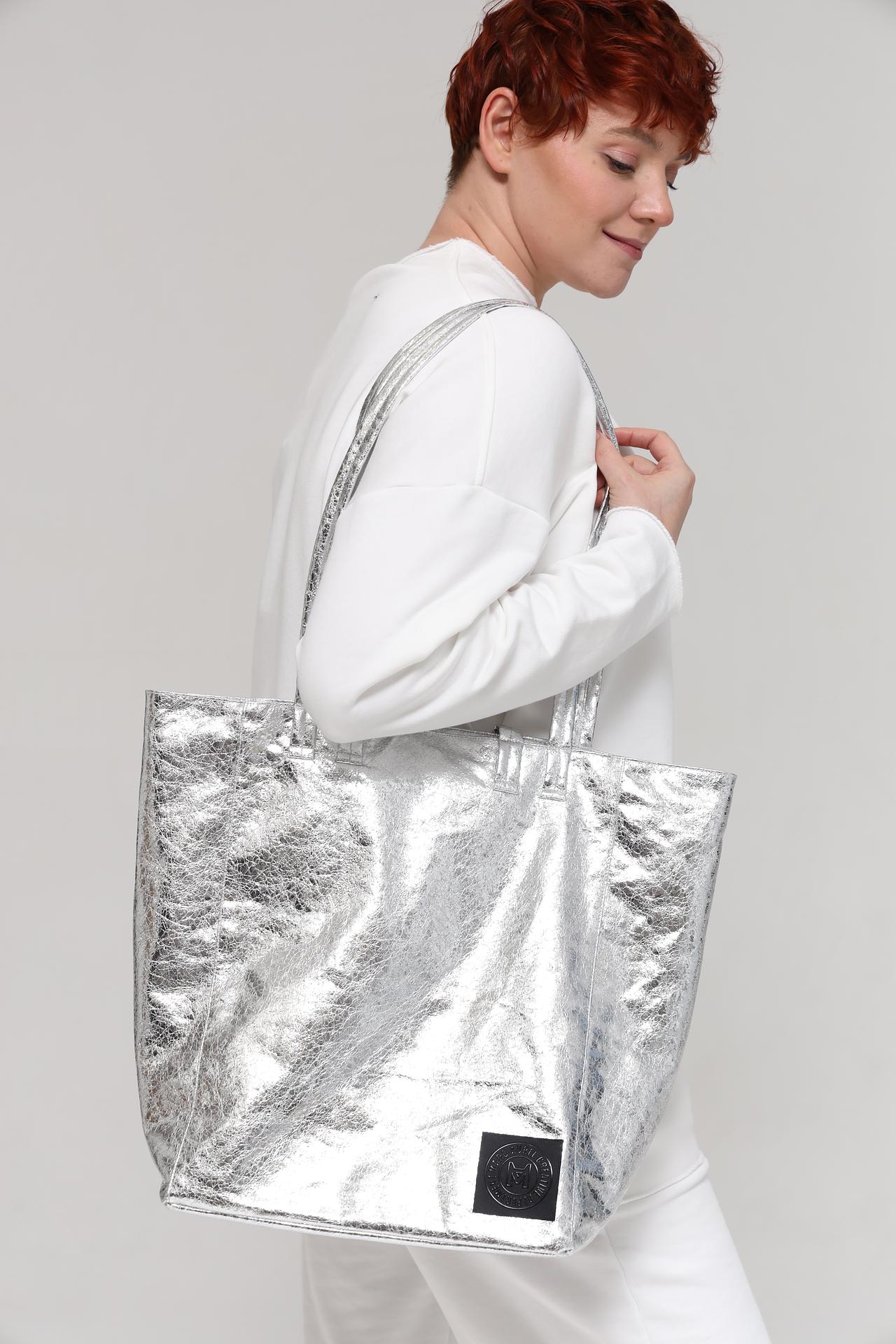 Стильная и вместительная сумка шоппер серебристого цвета станет ярким акцентом в вашем образе. Эта удобная и практичная сумка идеально подойдет для повседневных дел, шоппинга или путешествий. Благодаря своему оригинальному дизайну, она подчеркнет вашу индивидуальность и добавит блеска любому наряду.