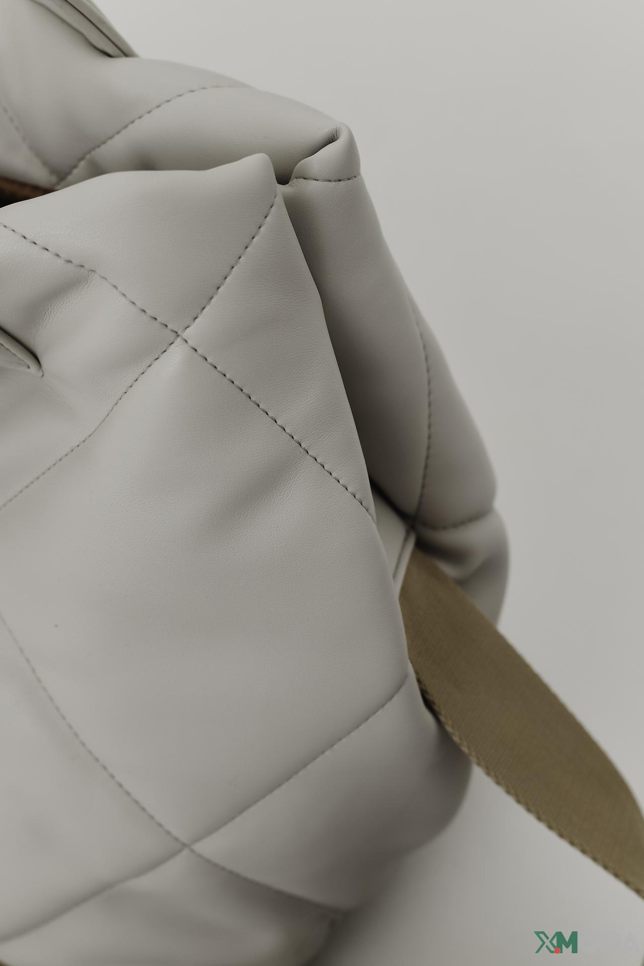 - Стильный дизайн: Стеганый узор и минималистичный логотип бренда добавляют элегантности и делают сумку запоминающейся.