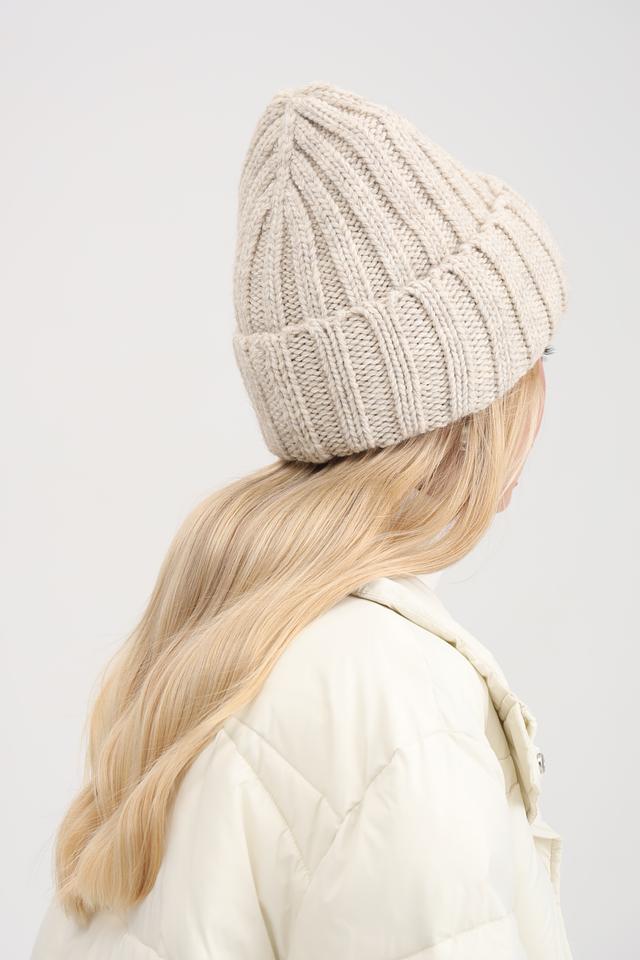 Бежевая вязаная шапка Adel из шерсти и акрила. Мягкий и тёплый аксессуар для создания уютного образа. Состав: 50% шерсть, 50% акрил. Состав: шерсть 50%, акрил 50%