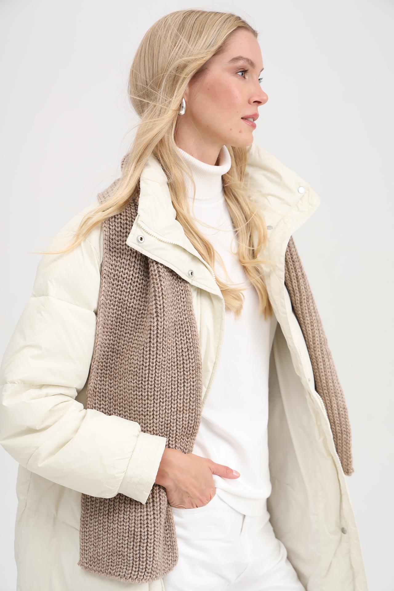 - Вязка: Крупная вязка придает шарфу объем и фактуру, делая его стильным акцентом в образе. Шарф крупной вязки – это модный аксессуар.