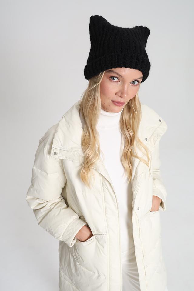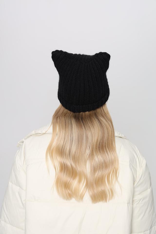 Чёрная шапка от Adel с декоративными ушками. Изготовлена из мягкой и тёплой пряжи с добавлением шерсти и ангоры, обеспечивающей комфорт в холодную погоду. Стильный и практичный аксессуар для создания уютного образа. Состав: шерсть 50%, полиамид 35%, ангора 15%