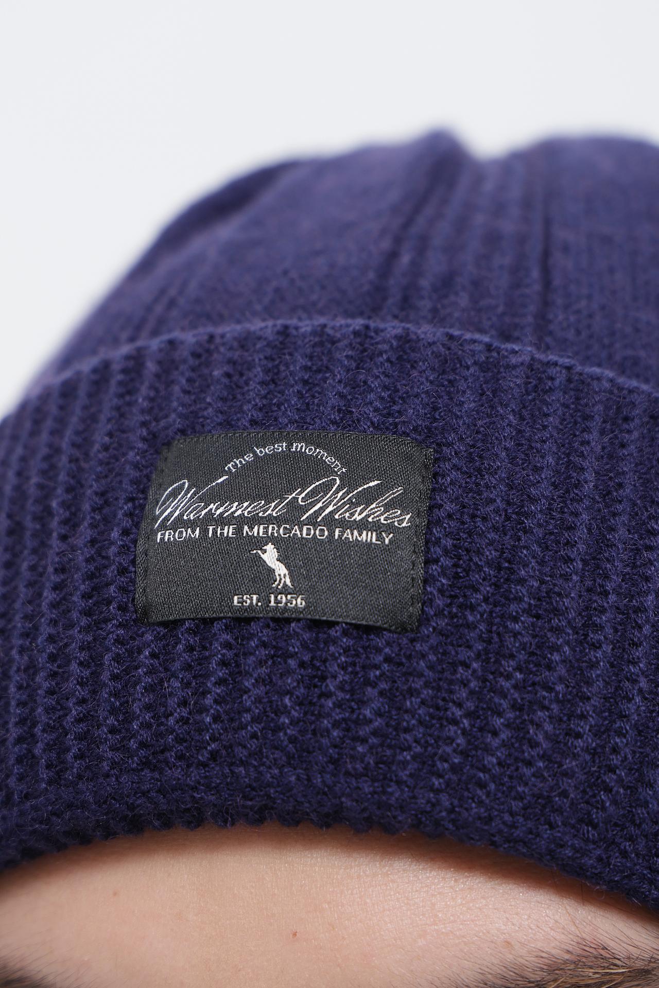 - Дизайн: Классическая форма и универсальный синий цвет делают эту шапку подходящей для любого образа. Ребристая вязка и отворот придают изделию стильный вид.