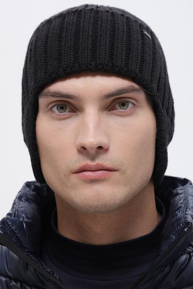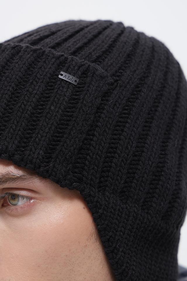 Чёрная вязаная шапка ADL man с отворотом и ушами. Изготовлена из натуральной шерсти, обеспечивающей тепло и комфорт в холодную погоду. Стильный и практичный аксессуар для мужчин. Состав: шерсть 50%, акрил 50%