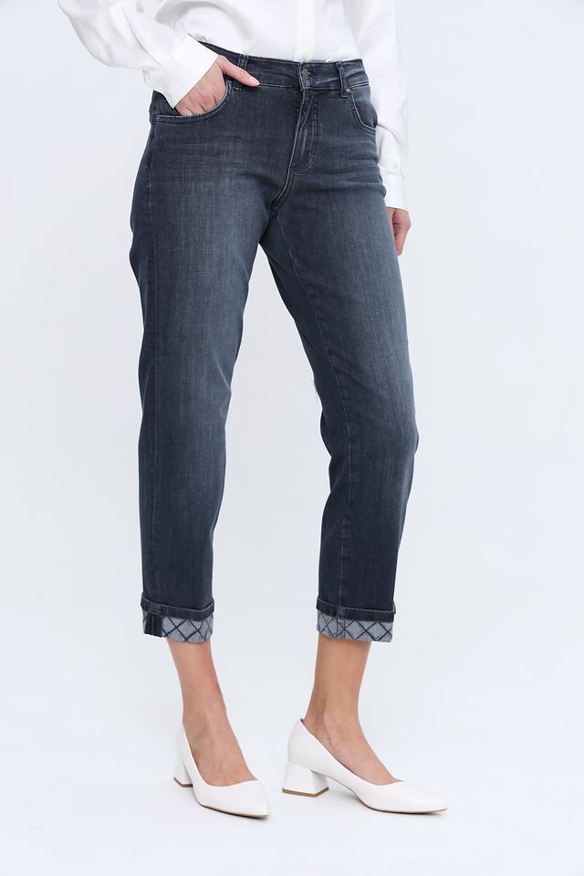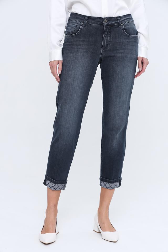 Джинсы Angels тёмно-синего цвета — это стильная модель укороченного кроя с декоративной отделкой на штанинах. Изготовлены из качественного хлопка с добавлением полиэстера и эластана для комфорта и долговечности. Состав: хлопок 92%, полиэстер 6%, эластан 2%