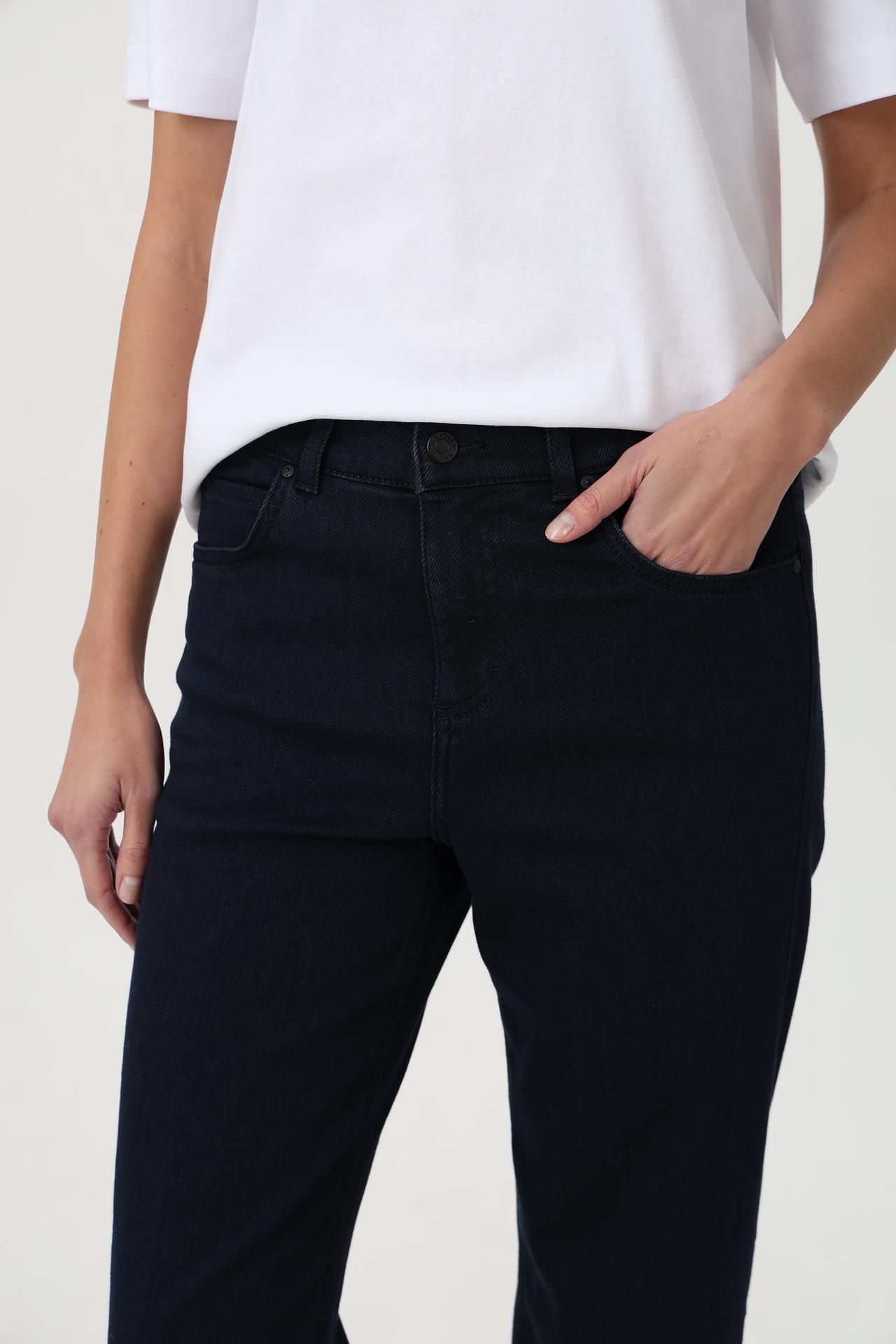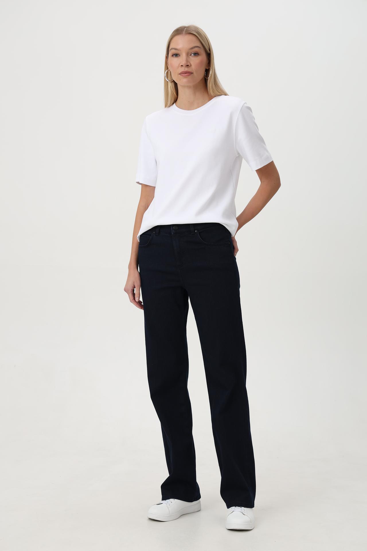 - Универсальность стиля. Тёмно-синие джинсы прямого кроя идеально подходят для создания разнообразных образов. Они легко сочетаются с блузами, рубашками, футболками и свитерами, становясь незаменимой основой вашего гардероба.