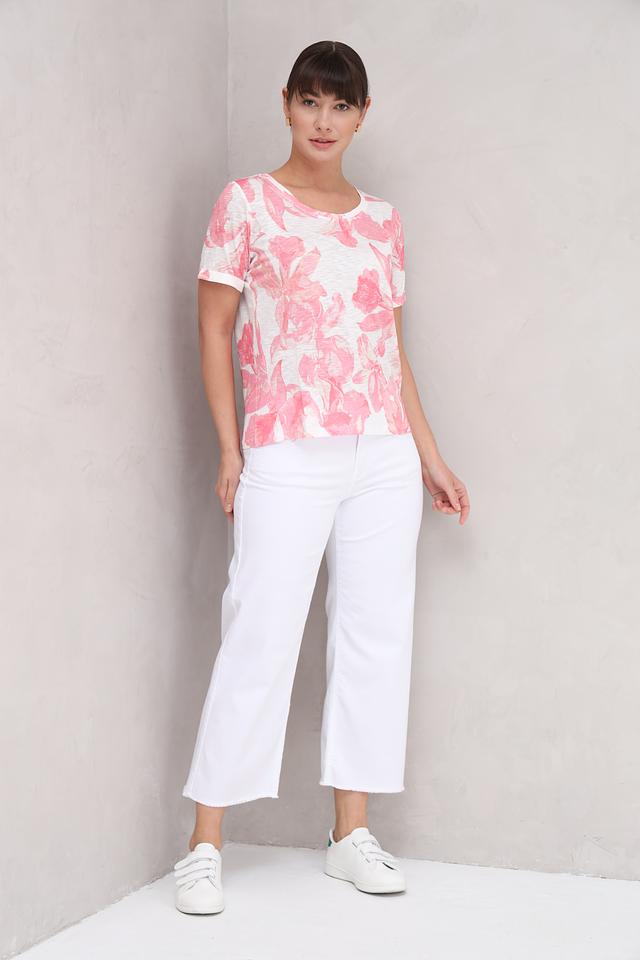 Джинсы имеют укороченный крой, что делает их идеальным выбором для теплого времени года. Завышенная талия подчеркивает фигуру и обеспечивает комфортную посадку. Прямой крой брюк визуально вытягивает силуэт.