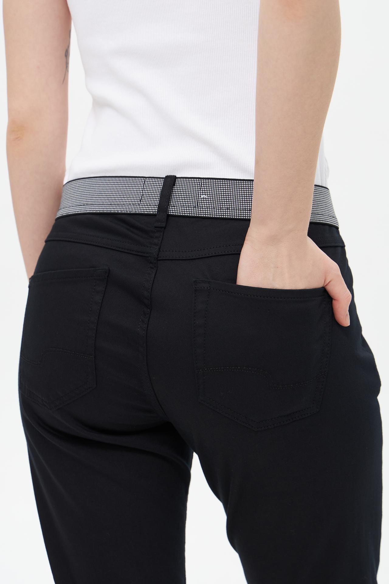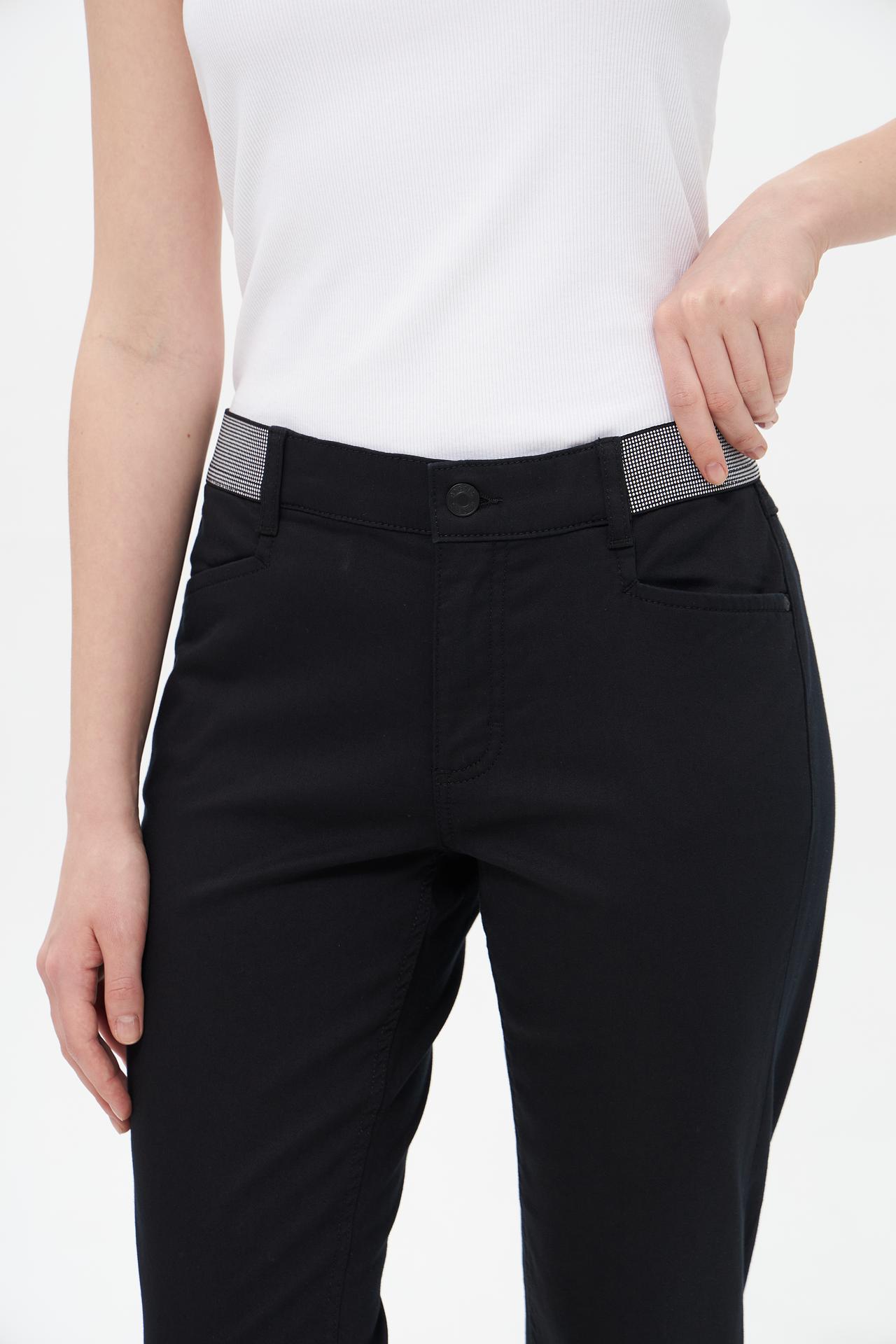 - Дизайн: Классический крой брюк дополнен стильной декоративной вставкой на поясе, добавляющей изюминку образу.
