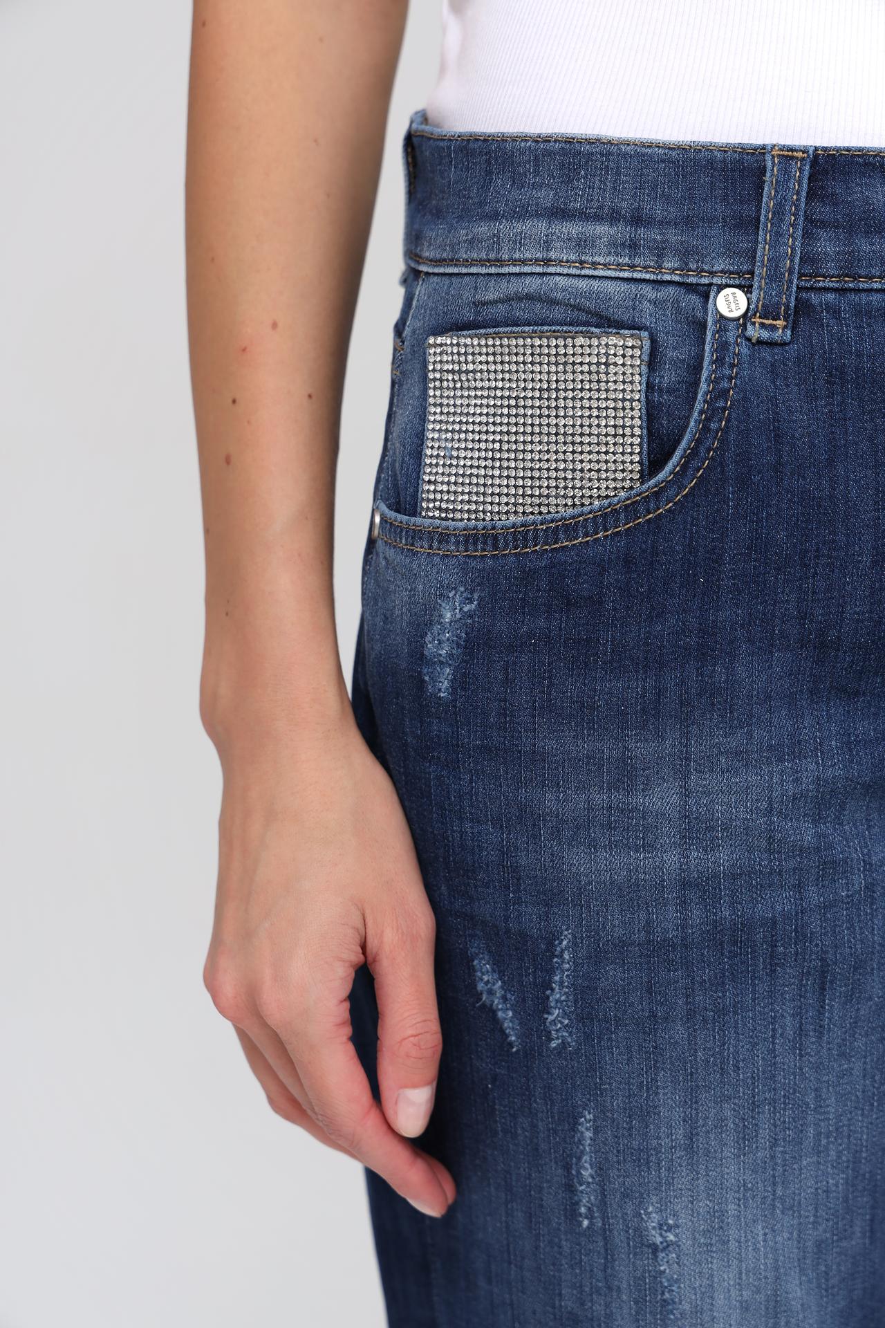 Модель имеет оригинальный декор в виде кармана, украшенного стразами. Идеальный выбор для создания ярких и запоминающихся образов. Найдите свой идеальный образ с этими стильными джинсами!