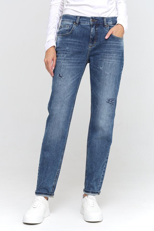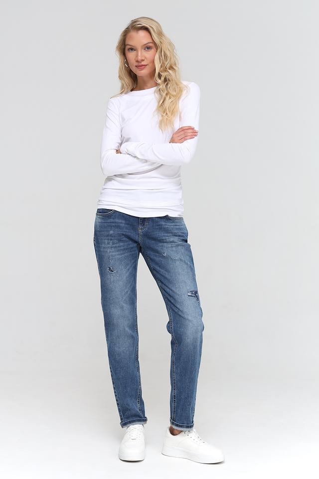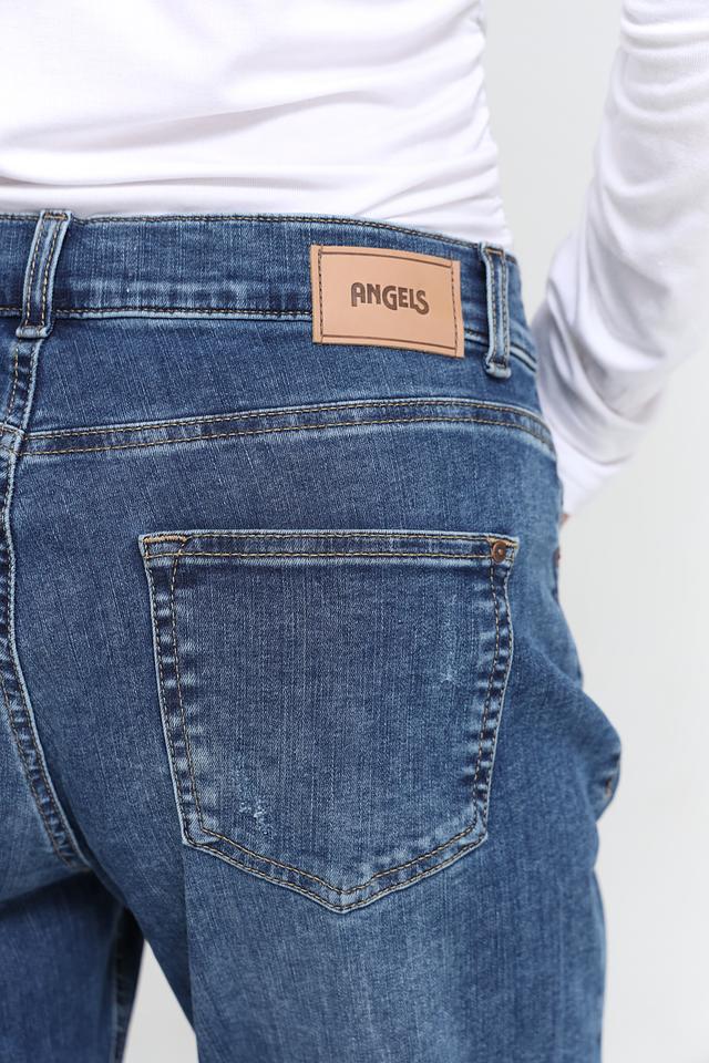 Синие джинсы Angels в стиле boyfriend — удобная и стильная модель с эффектом потертостей и рваными деталями. Классический крой и качественный состав обеспечивают комфорт и долговечность. Состав: хлопок 92%, полиэстер 6%, эластан 2%