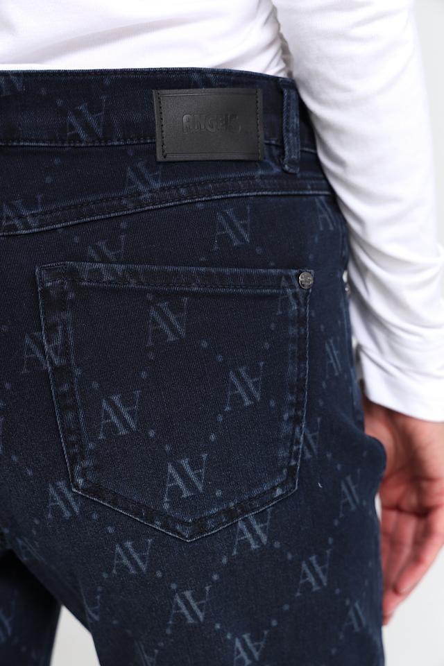 Синие джинсы Angels с укороченным кроем и повторяющимся логотипом по всей поверхности. Модель выполнена из плотного хлопка с добавлением полиэстера и эластана для комфорта и сохранения формы. Состав: хлопок 65%, полиэстер 32%, эластан 2%