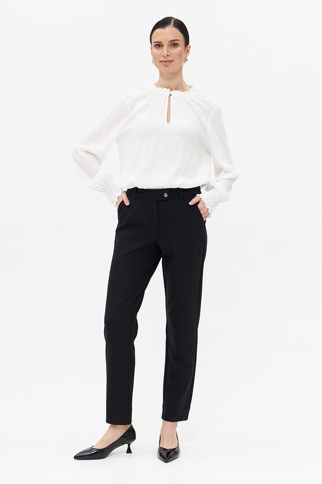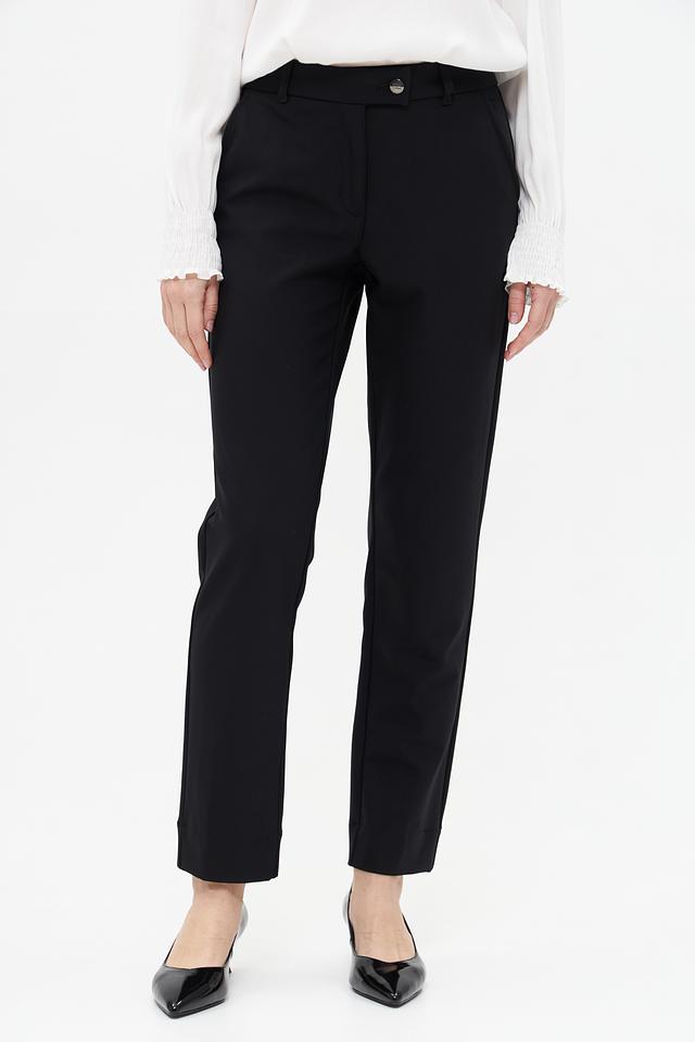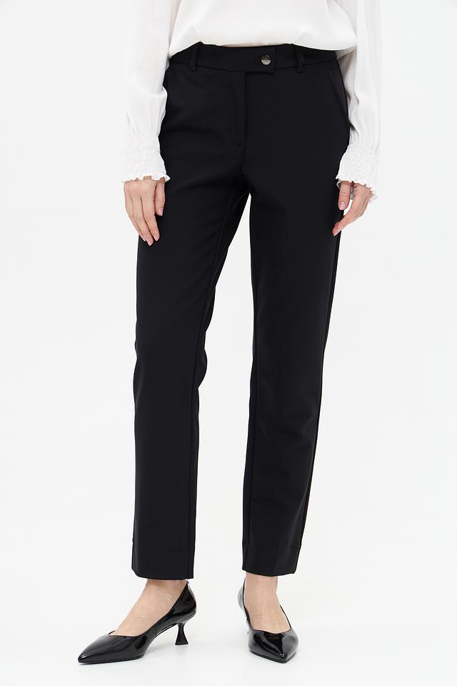 Застёжка на пуговицу и молнию, а также наличие боковых и задних карманов делают брюки практичными и функциональными. Лаконичный дизайн без лишних деталей подчеркивает элегантность и универсальность модели. Эти брюки идеально сочетаются с блузками, рубашками, жакетами и различными видами обуви.