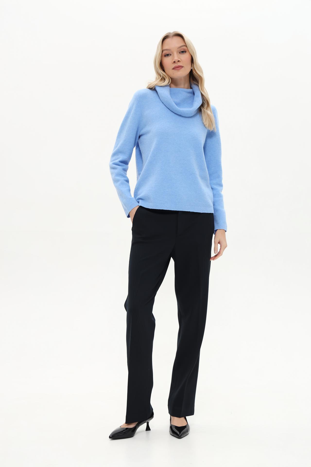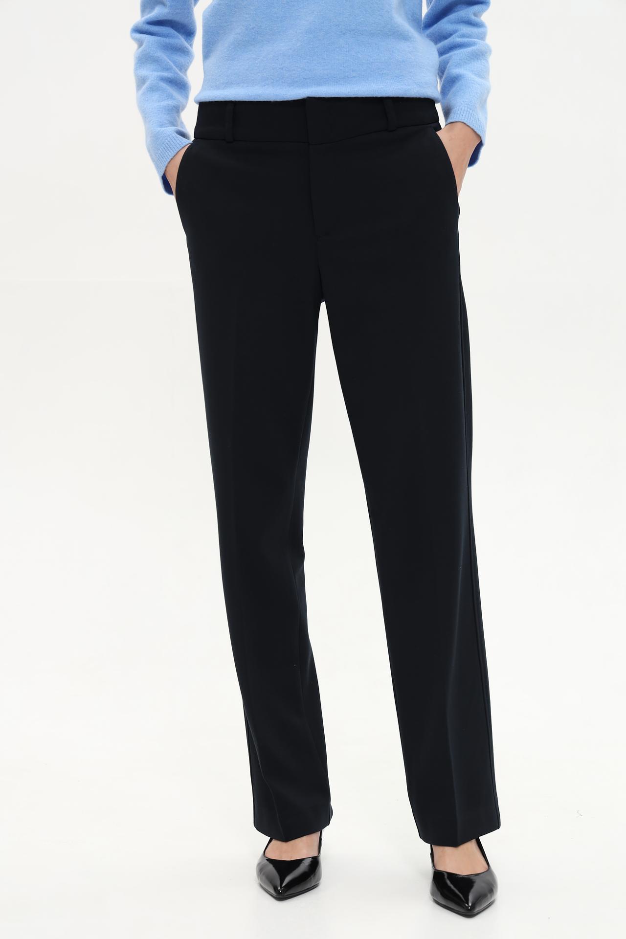 - Посадка: Классическая прямая. Брюки обеспечивают комфортную посадку и визуально удлиняют ноги, создавая элегантный силуэт.