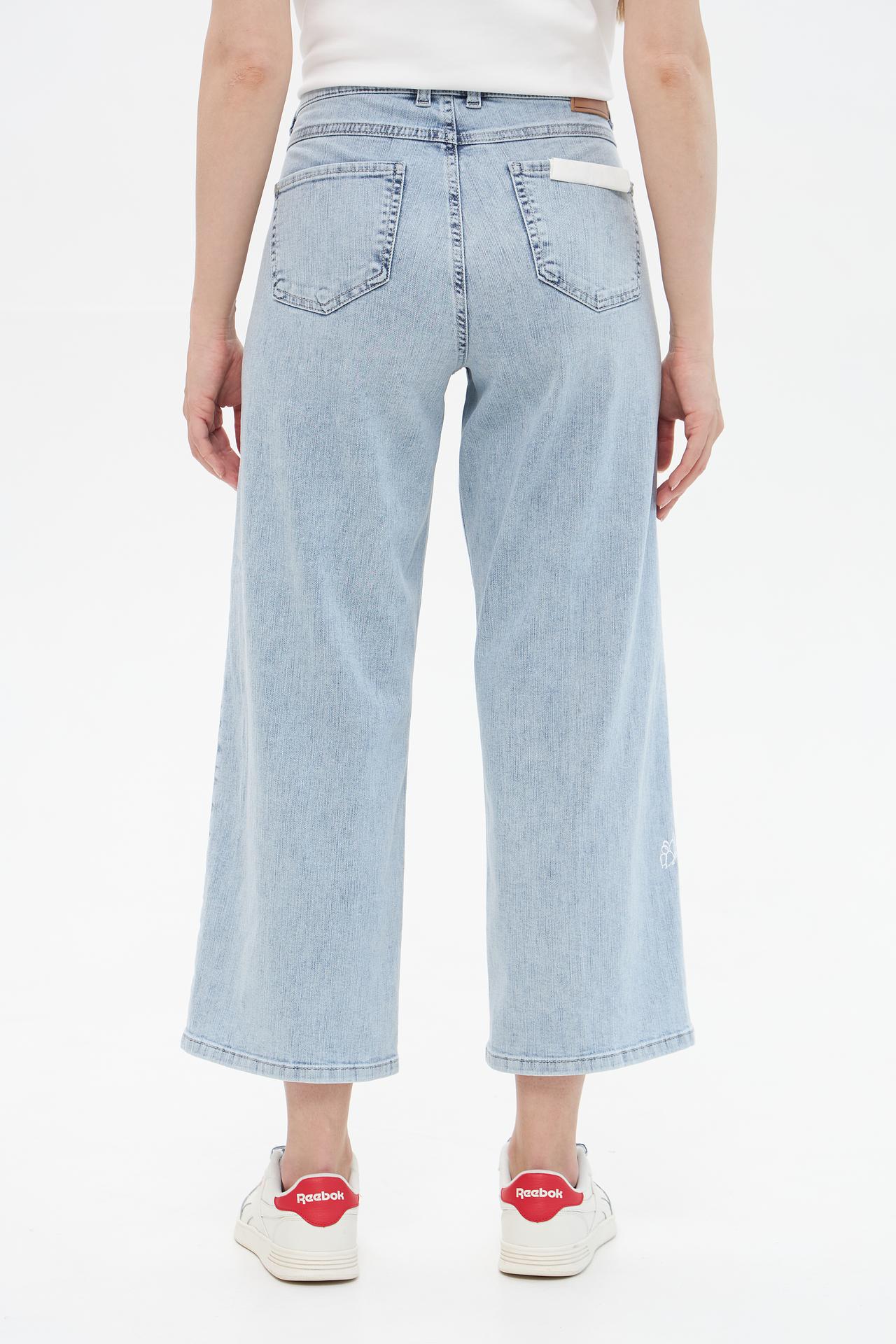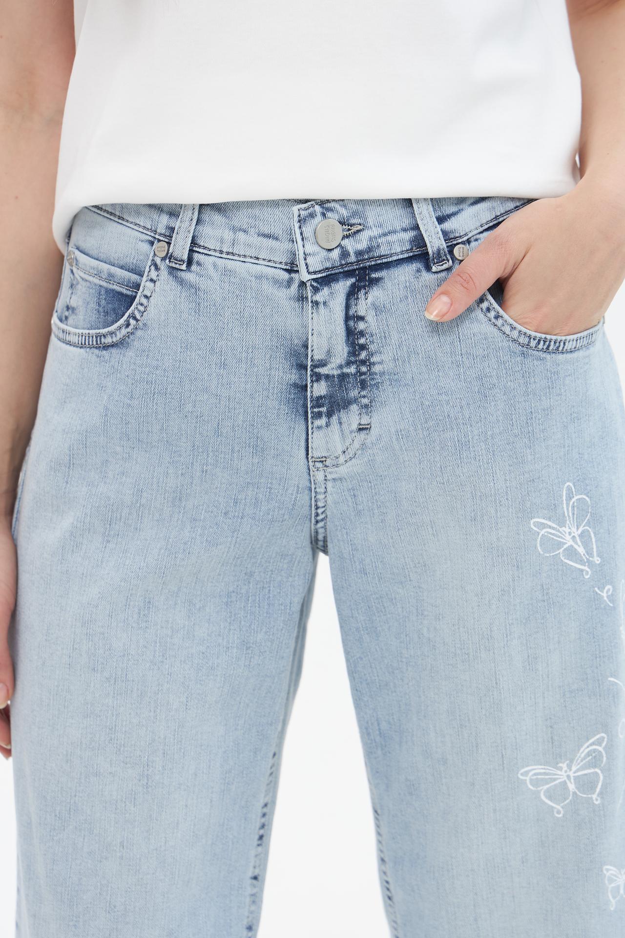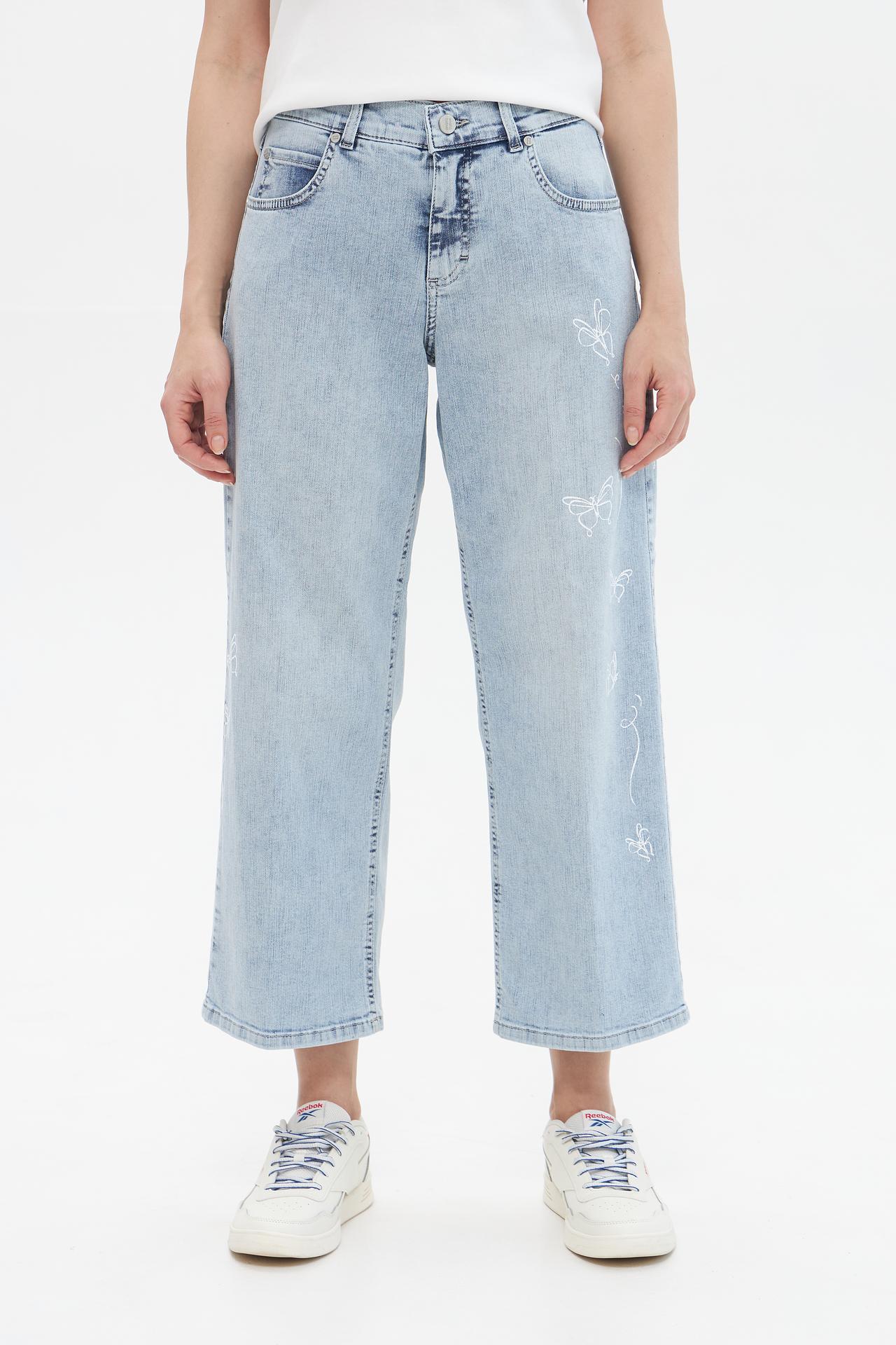 Женские джинсы Angels в светлом оттенке голубого денима — идеальный выбор для создания свежих и легких образов. Модель с широкими укороченными штанинами и высокой посадкой подчеркнет вашу индивидуальность, обеспечивая свободу движений. Изящная вышивка в виде бабочек по бокам добавляет изделию уникальности и романтичного шарма, делая эти джинсы незаменимым элементом летнего гардероба.