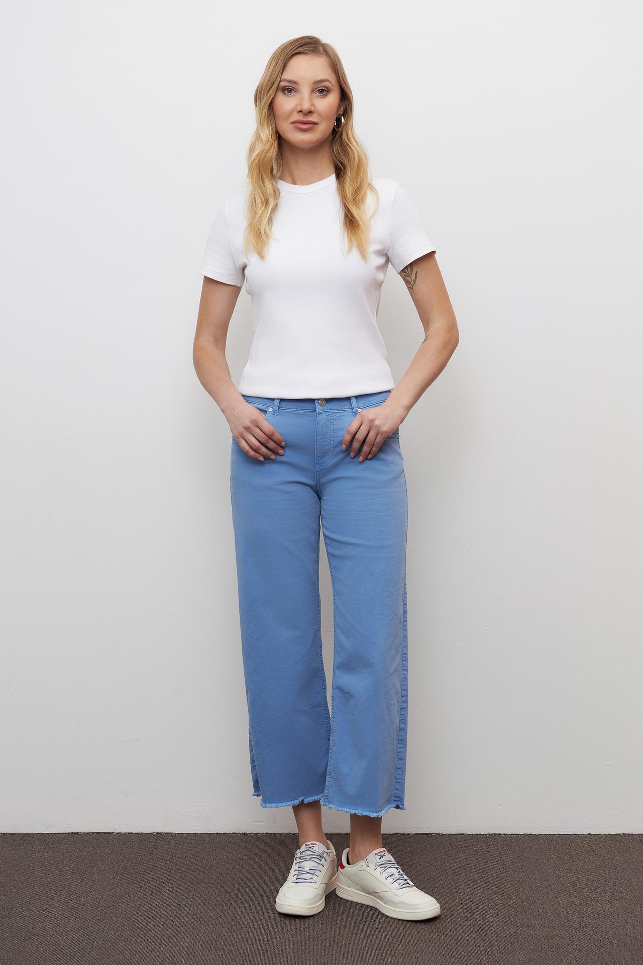 - Практичность и универсальность. Голубой цвет делает брюки легко комбинируемыми с различной одеждой и обувью, позволяя создавать как расслабленные, так и более элегантные повседневные образы. Идеально подходят для весенне-летнего сезона.