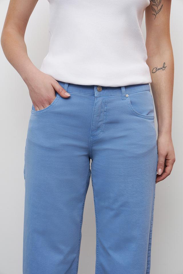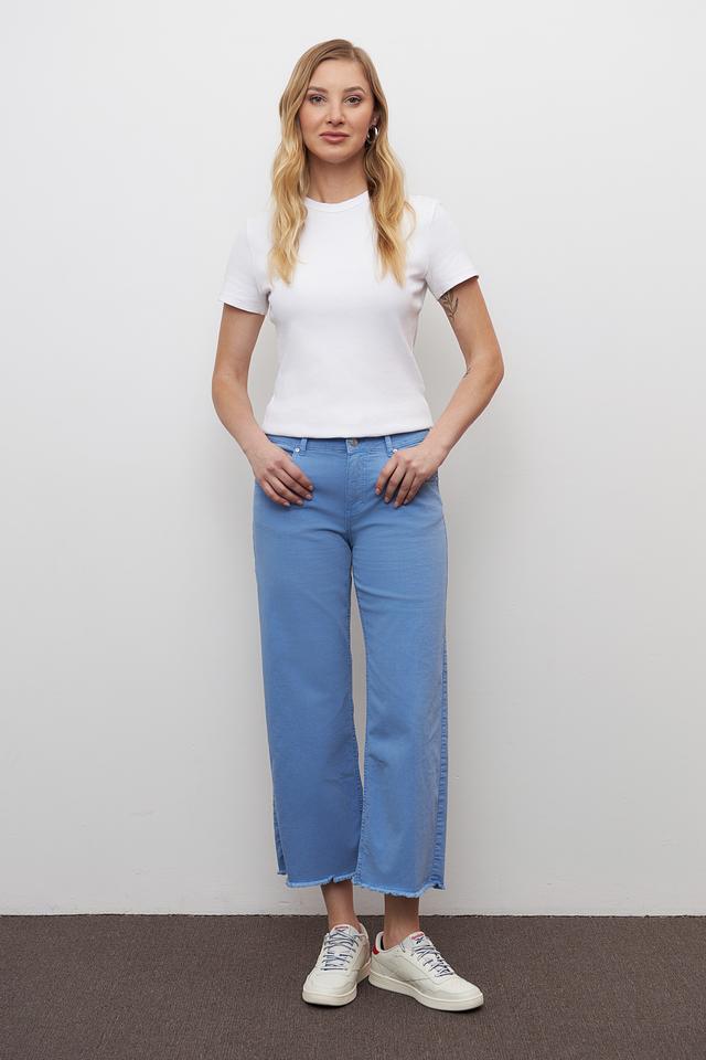 Женские брюки-кюлоты Angels голубого цвета, выполнены из хлопка с добавлением эластана. Удобная посадка и стильный силуэт. Состав: хлопок 98%, эластан 2%