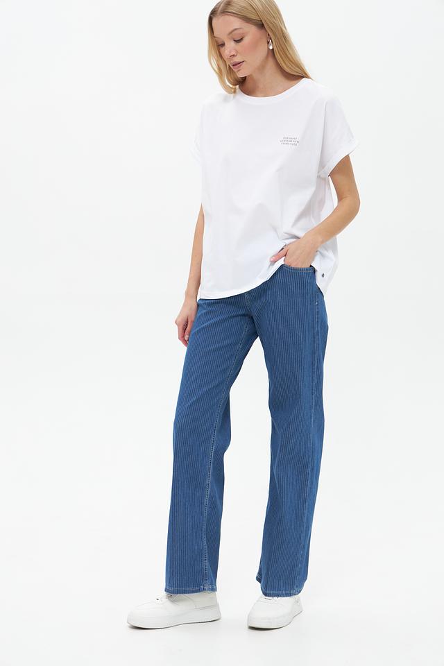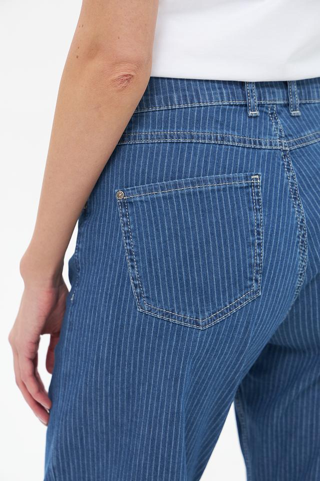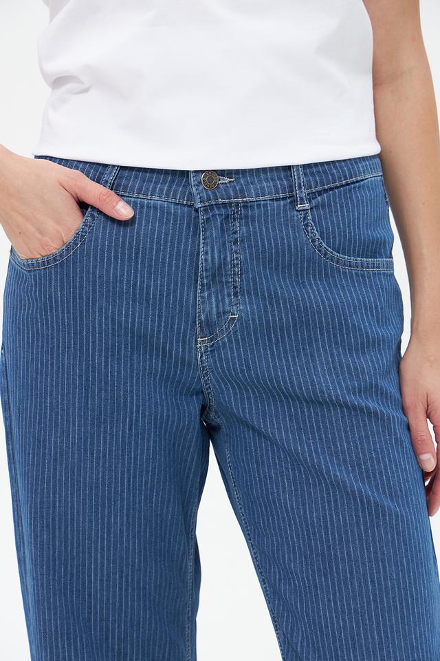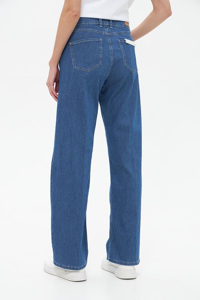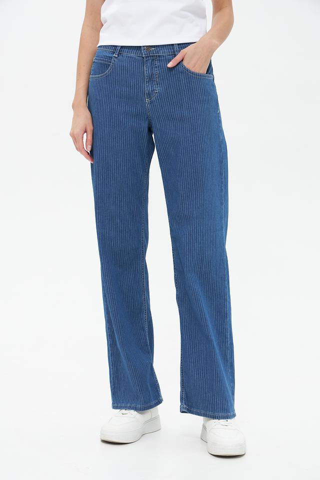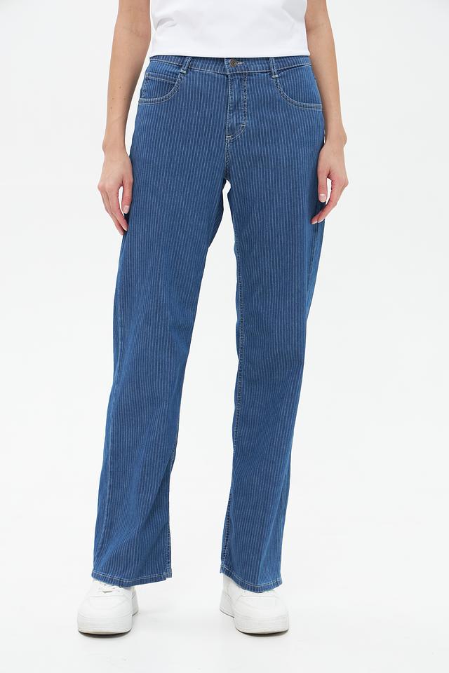 Представляем стильные джинсы от бренда Angels. Эта модель выполнена в классическом синем цвете с выразительным вертикальным рисунком в полоску, что придает образу оригинальность.