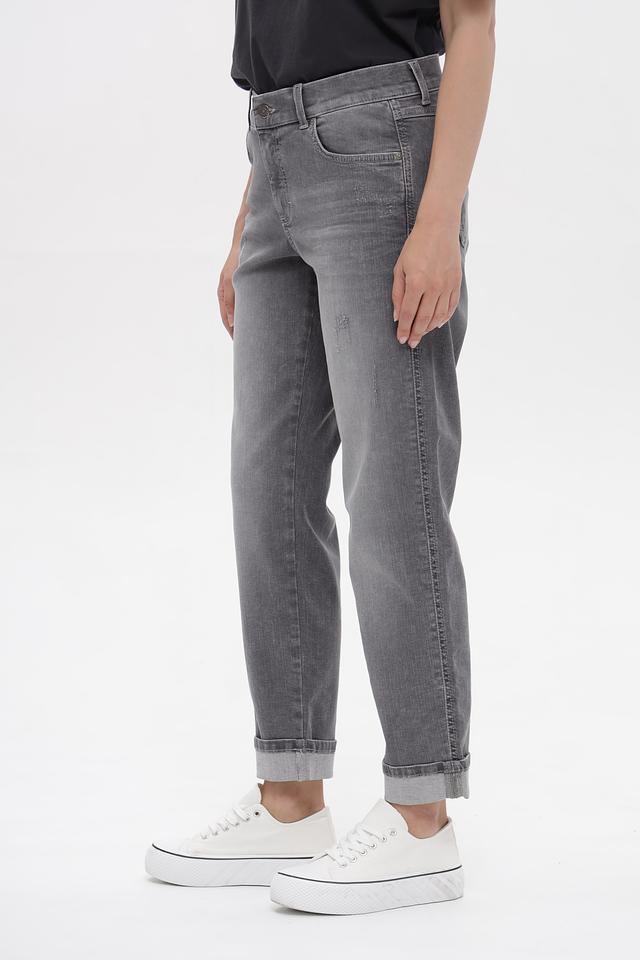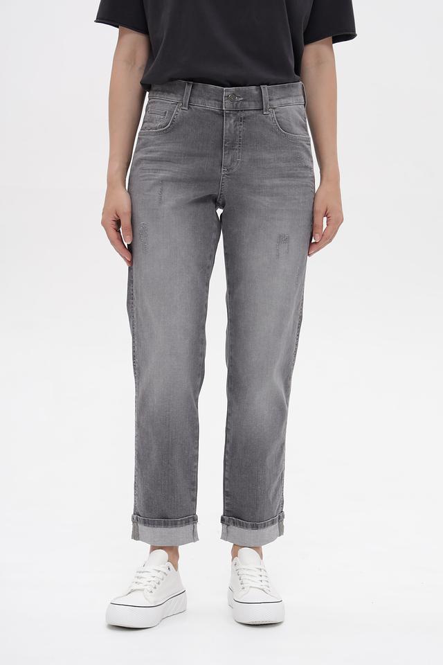 Серые джинсы Angels с эффектом потертостей и укороченным кроем. Изготовлены из хлопка с добавлением полиэстера и эластана для комфорта и износостойкости. Состав: хлопок 92%, полиэстер 6%, эластан 2%