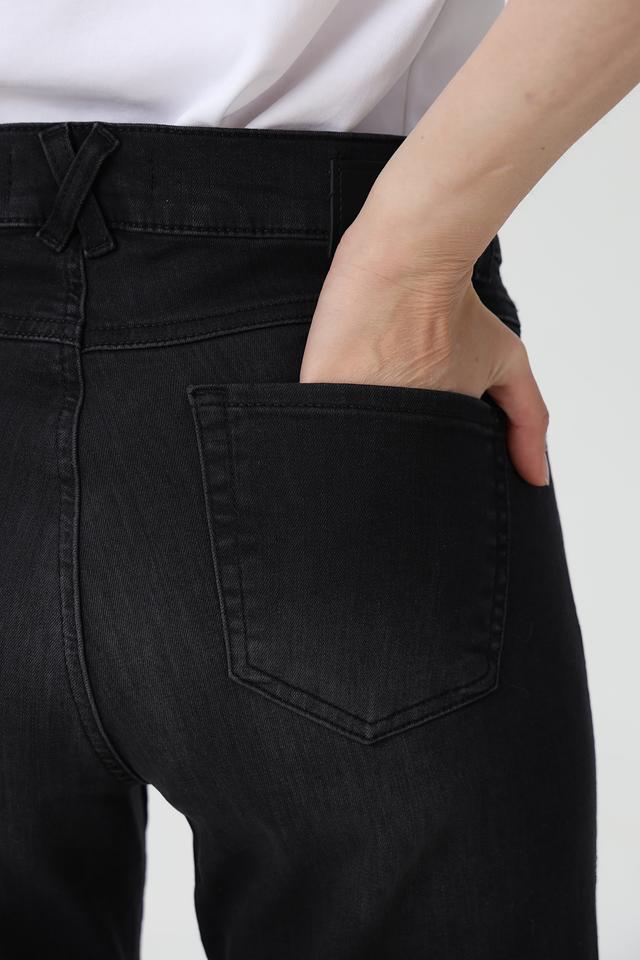 Джинсы имеют классическую посадку на талии, зауженный книзу крой и пять карманов – два передних, два задних и один небольшой карман на передней части.