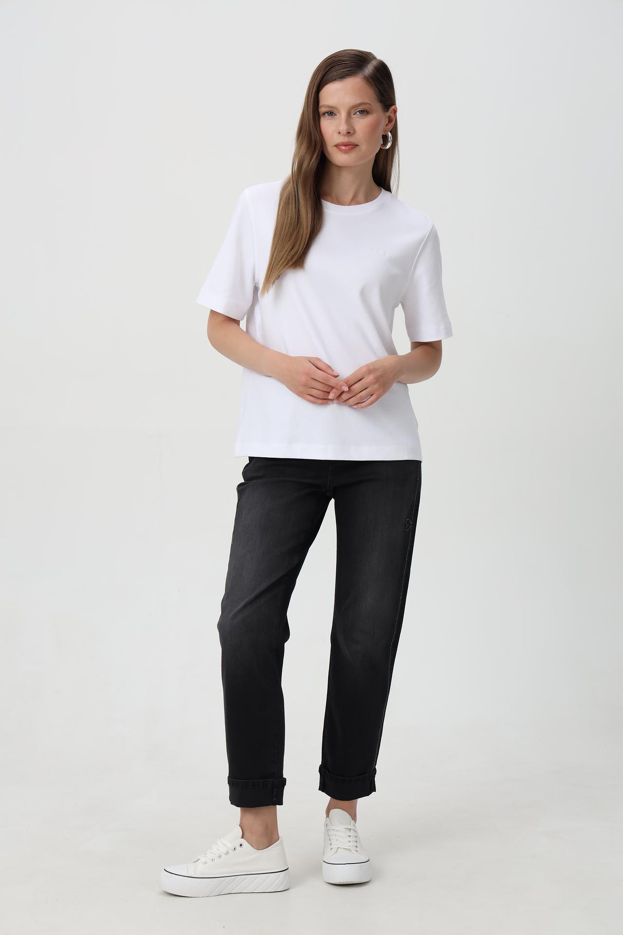 - Комфорт: Благодаря эластану в составе, джинсы обеспечивают свободу движений и комфорт на весь день.