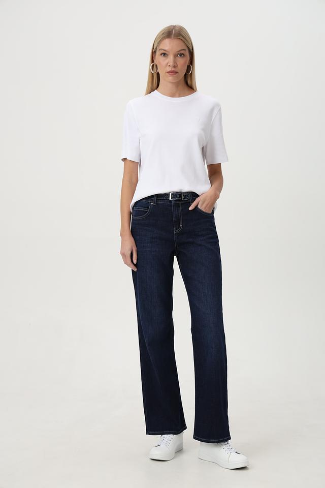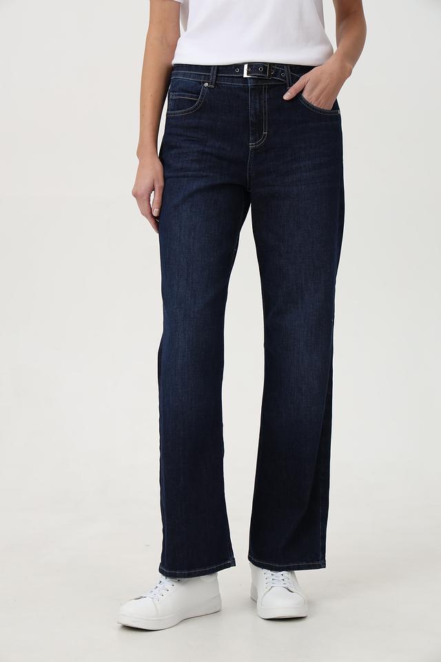 Джинсы имеют стандартную посадку, подчеркивающую фигуру, и удобный крой, обеспечивающий свободу движений. Пятикарманный дизайн и пояс с шлевками для ремня делают их универсальными для создания различных образов.