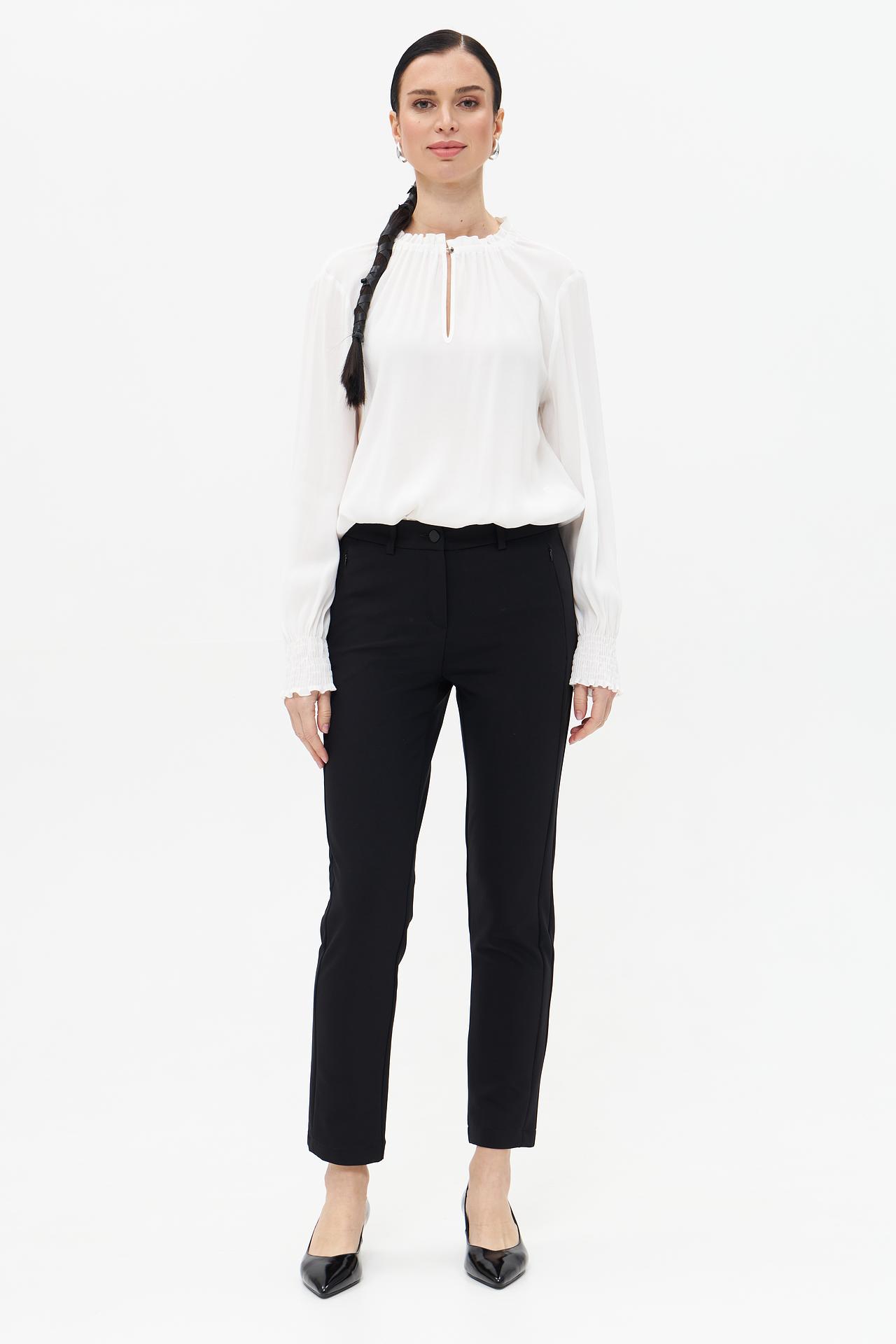 - Универсальность: Модель легко сочетается с различной одеждой — от строгих блуз и жакетов до более расслабленных топов и свитеров. Это делает брюки незаменимой вещью в гардеробе современной женщины.