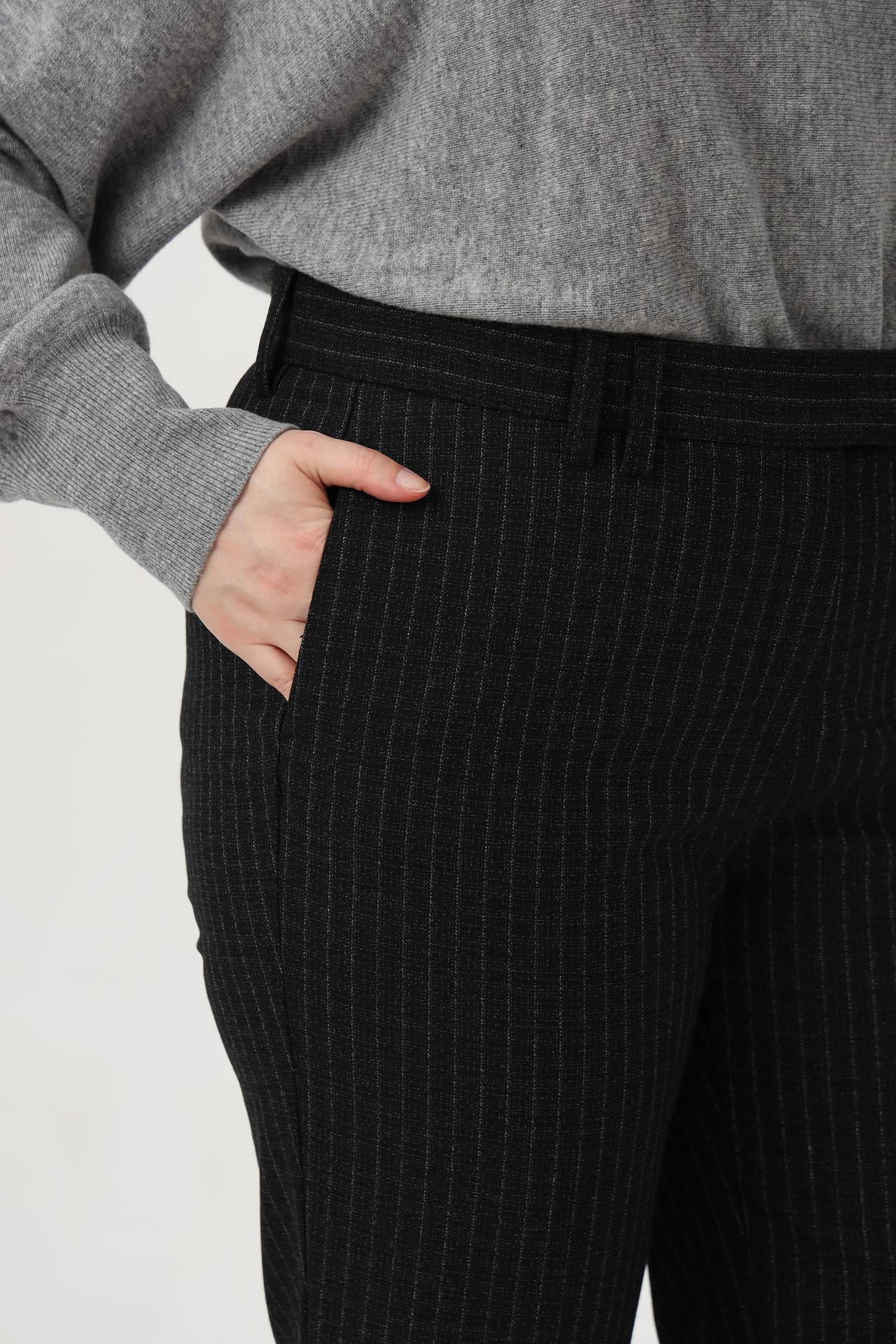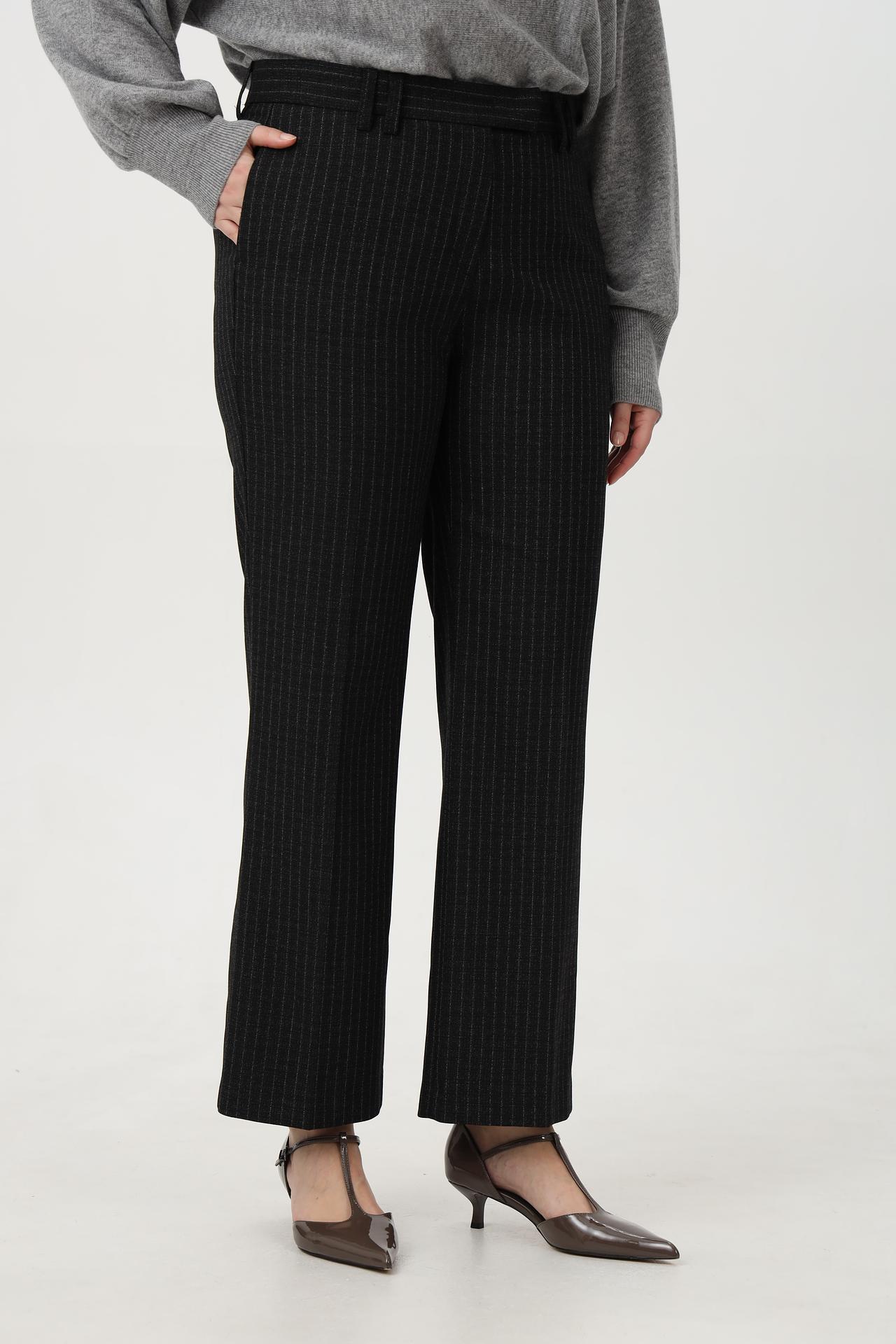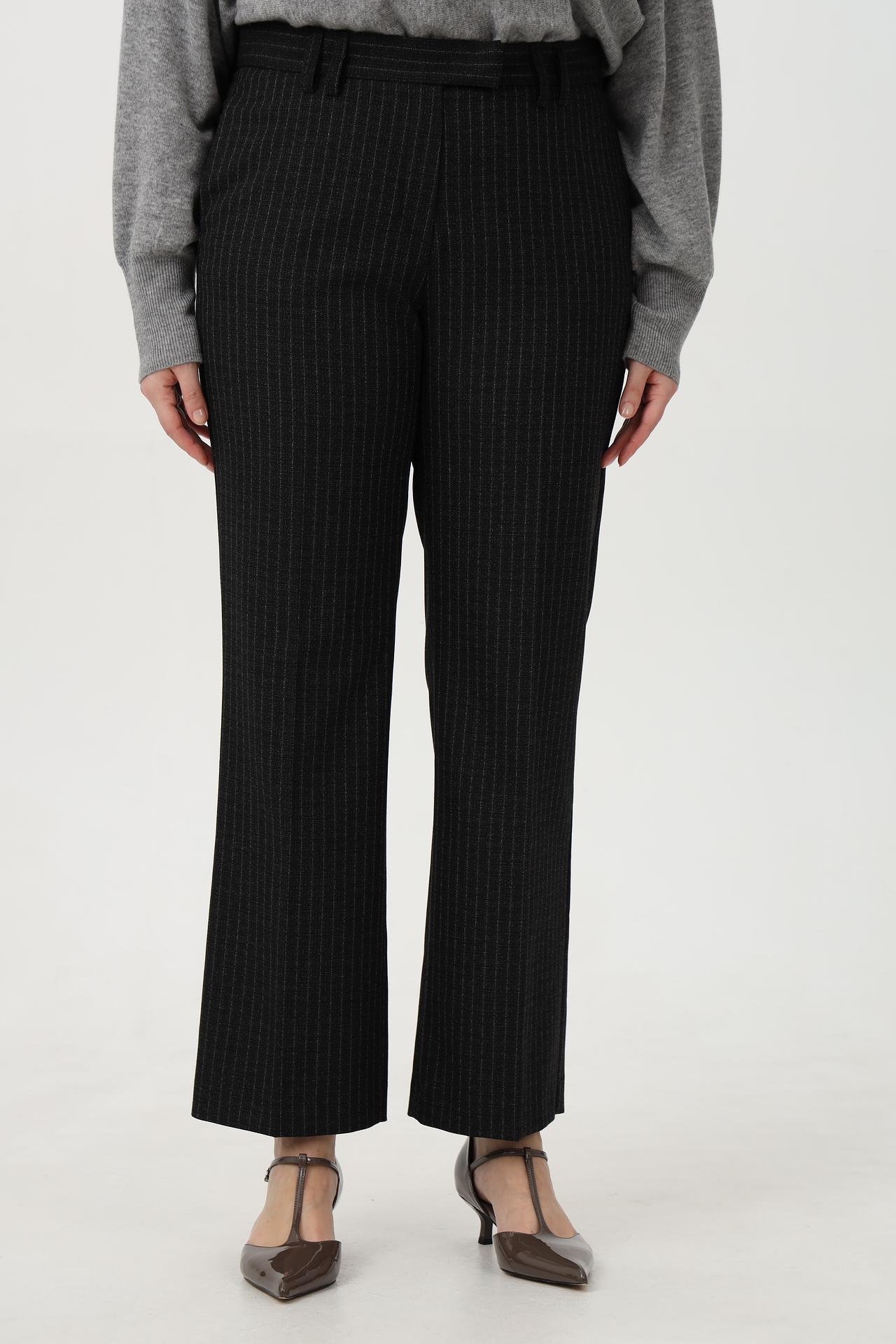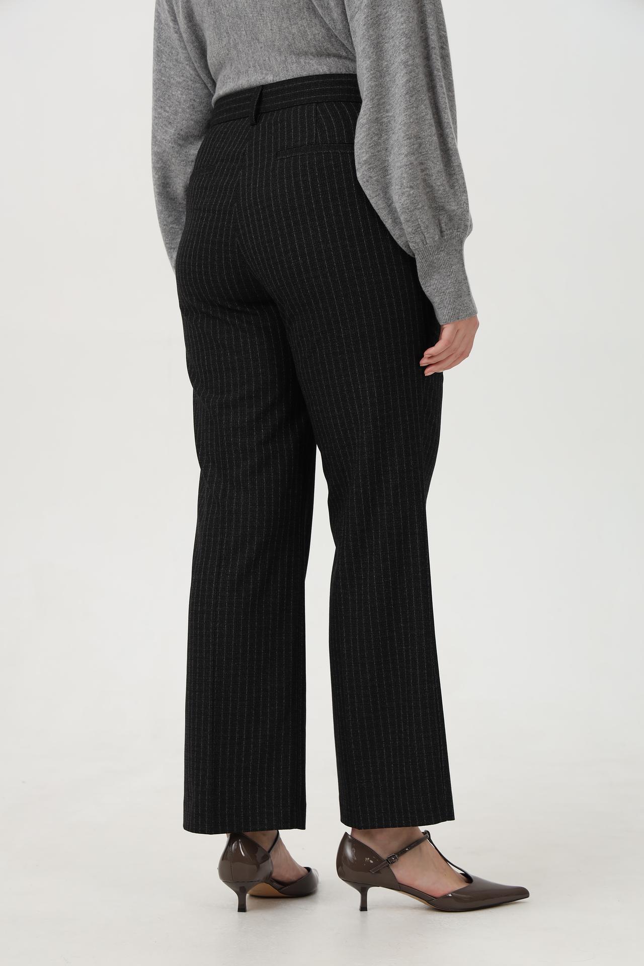 - Дизайн: Классический прямой крой с актуальным принтом в вертикальную полоску. Брюки выгодно подчеркивают достоинства фигуры и визуально стройнят ноги.