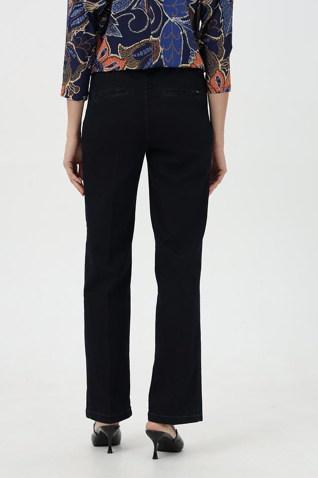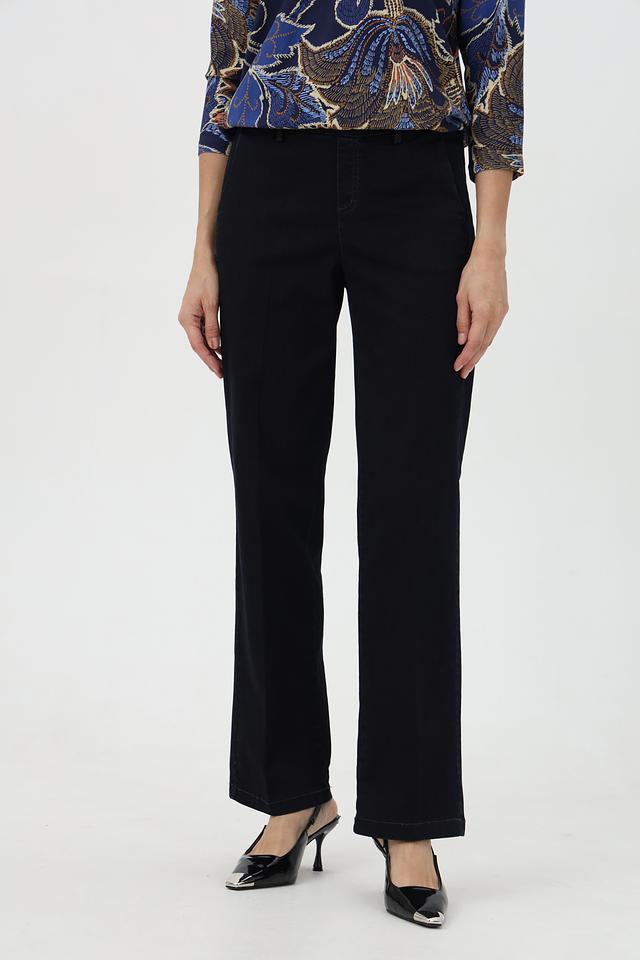 Эти брюки отлично сочетаются с блузками, рубашками и жакетами, позволяя создавать стильные и элегантные комплекты. Они идеально подойдут для работы, деловых встреч и повседневной носки. Тёмно-синий цвет придаёт образу сдержанность и благородство.