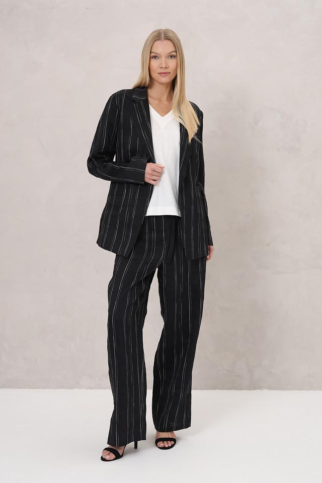 Этот жакет от Annette Gortz станет незаменимой частью вашего гардероба. Классический чёрный цвет с тонкими белыми полосками делает его универсальным и подходящим для различных случаев.