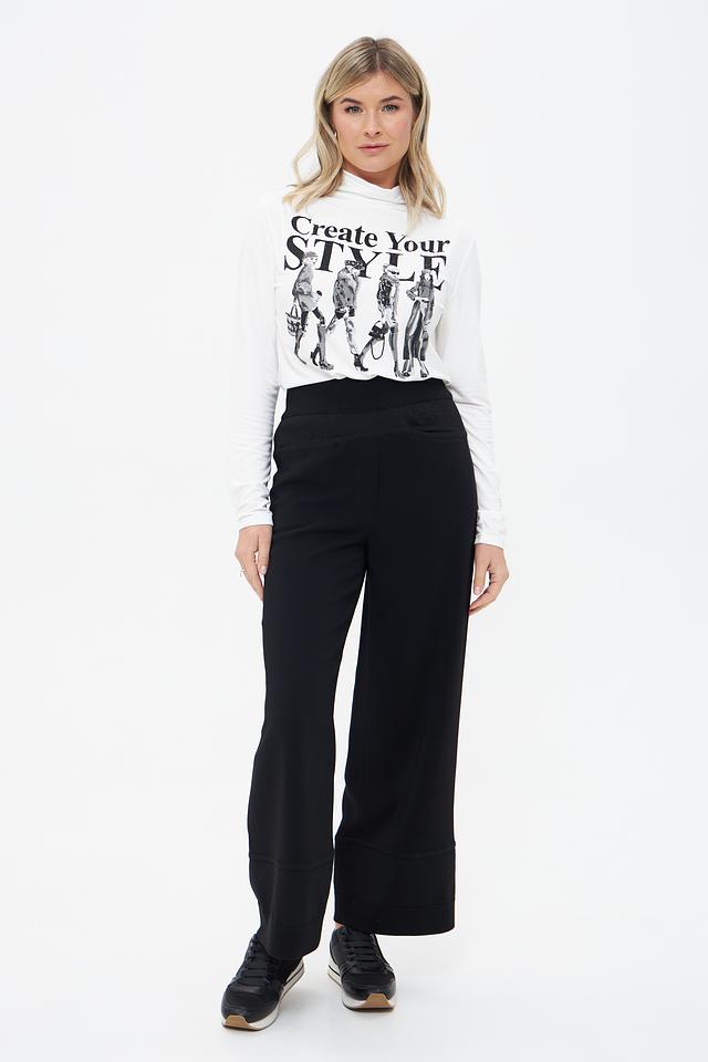 Особенности модели: высокая посадка, эластичный пояс, широкие штанины, которые визуально удлиняют ноги и создают силуэт в стиле ретро. Брюки имеют боковые карманы. Данная модель станет отличным выбором для создания как повседневных, так и вечерних образов.