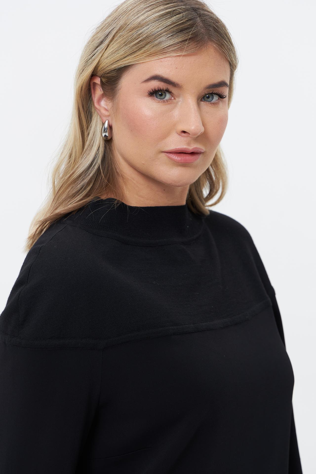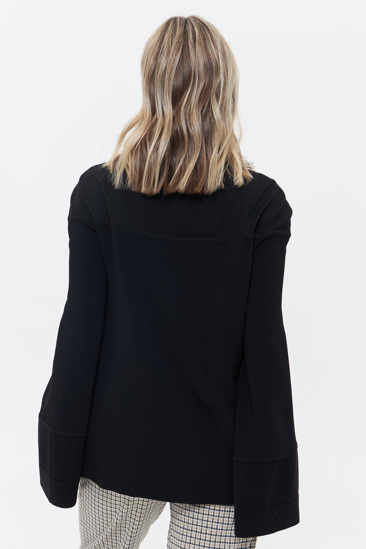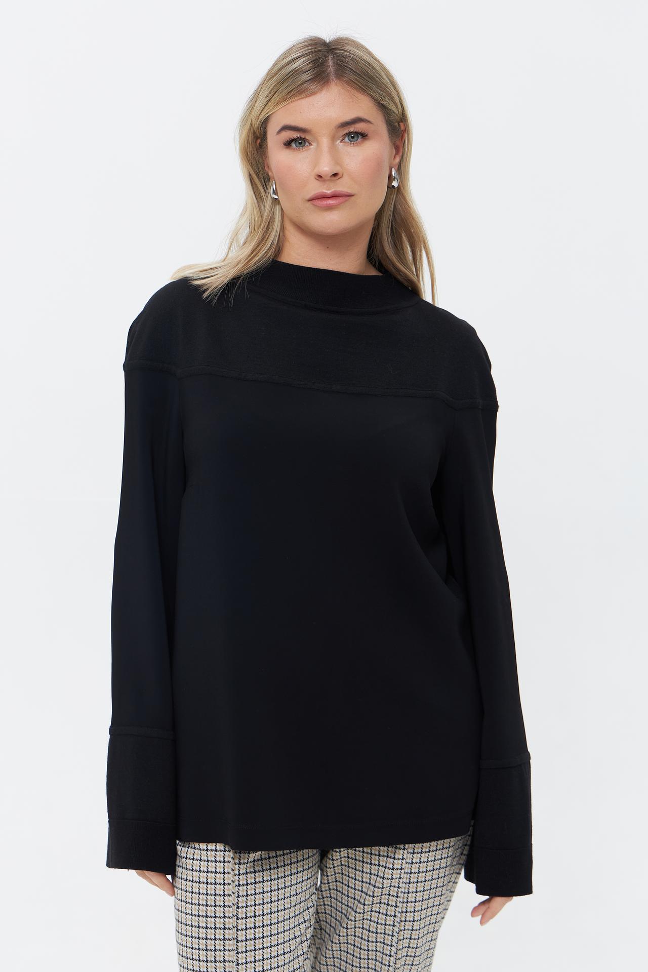 - Крой: Свободный силуэт с акцентом на широкие рукава. Пуловер отлично драпируется и создает расслабленный, но элегантный образ.