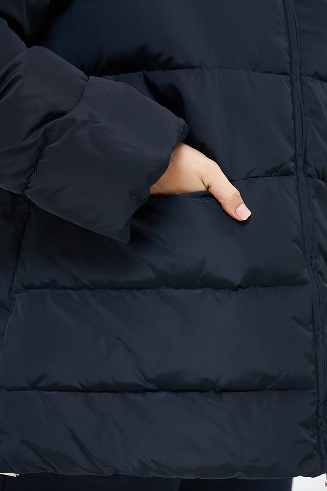 Модель имеет стеганую фактуру, удлиненный крой и удобный капюшон. Застежка – молния. Куртка оснащена двумя функциональными карманами на молнии. Подкладка и наполнитель также выполнены из 100% полиэстера, что гарантирует оптимальное тепло и комфорт.