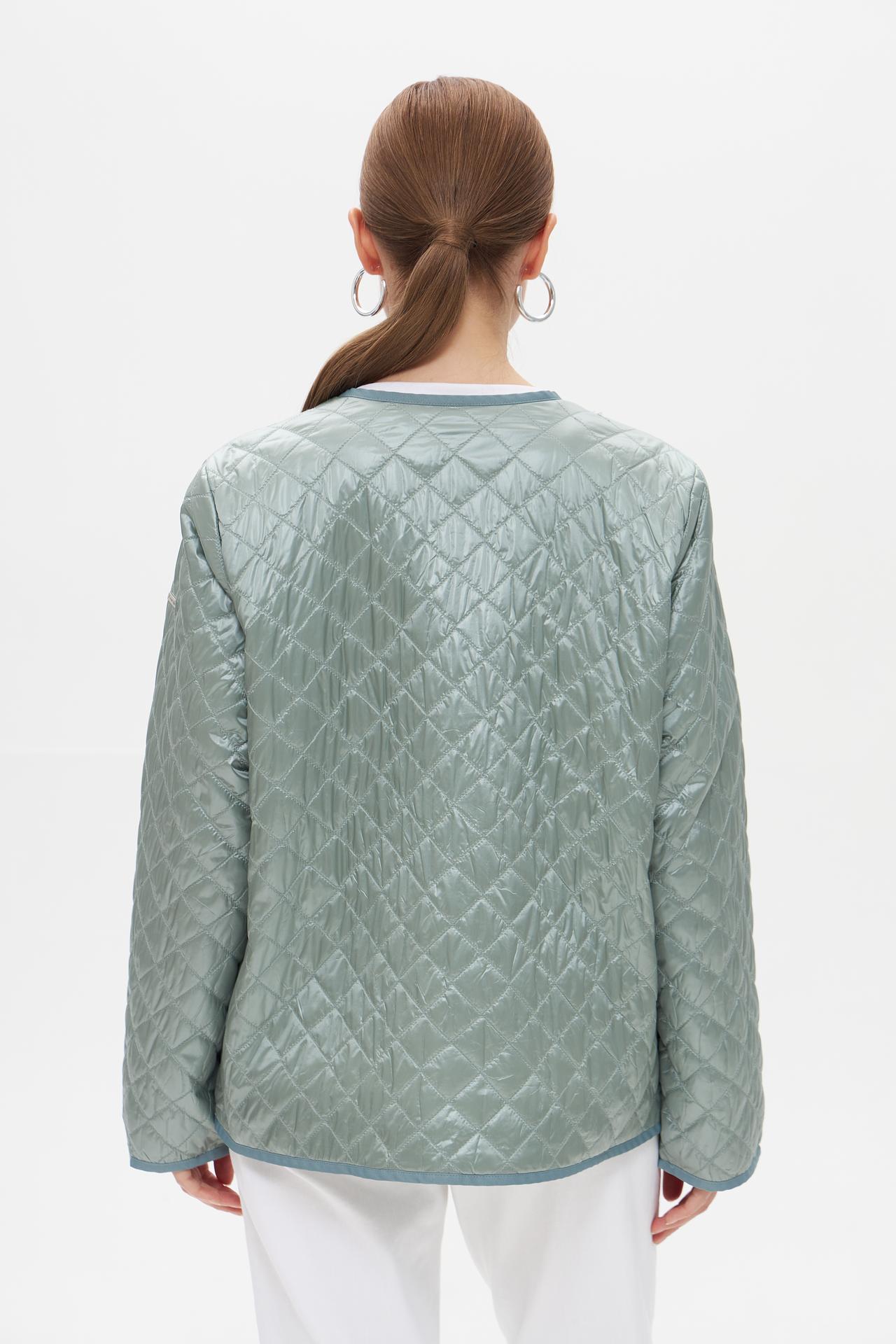 Легкая стеганая куртка Baronia – идеальное решение для вашего демисезонного гардероба. Модель выполнена в нежном зеленом оттенке с элегантным голубым кантом по краю горловины, планки и низу, что придает ей особую изысканность. Высококачественный материал, состоящий из 52% полиамида и 48% полиэстера, обеспечивает износостойкость, легкий уход и защиту от ветра.