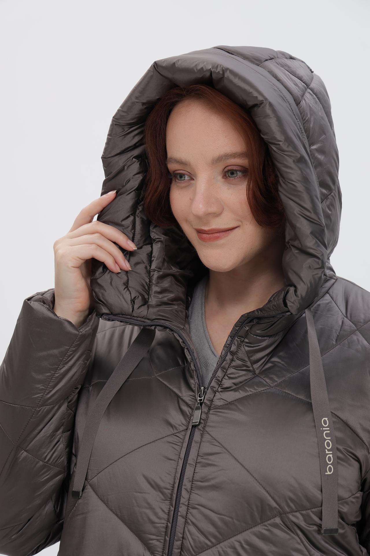 - Дизайн: Современный стеганый узор в виде ромбов придает пальто актуальный вид. Модель оснащена удобным капюшоном, который защитит от ветра и осадков, и надежной центральной молнией.