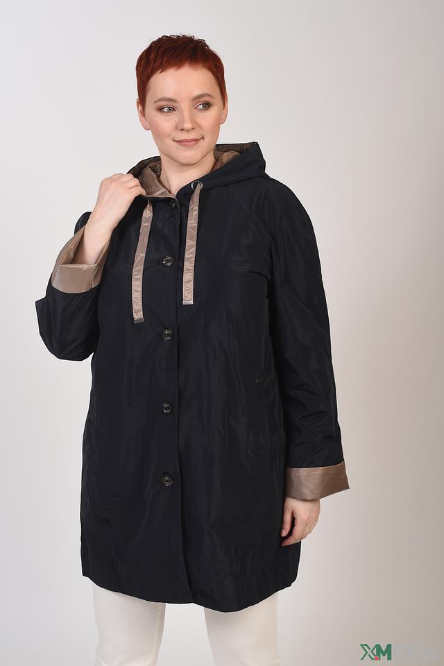 Плащ имеет удобный капюшон, который защитит вас от ветра и дождя. Отделка капюшона и манжет выполнена в бежевом цвете, что придает модели особый шарм.