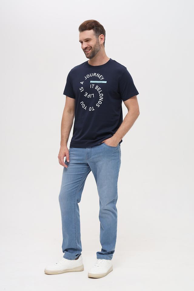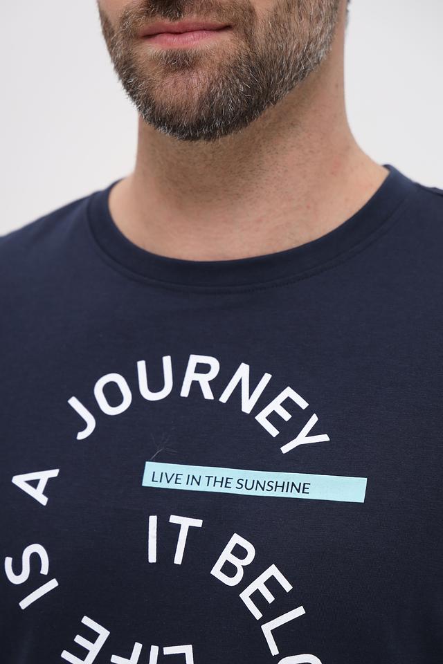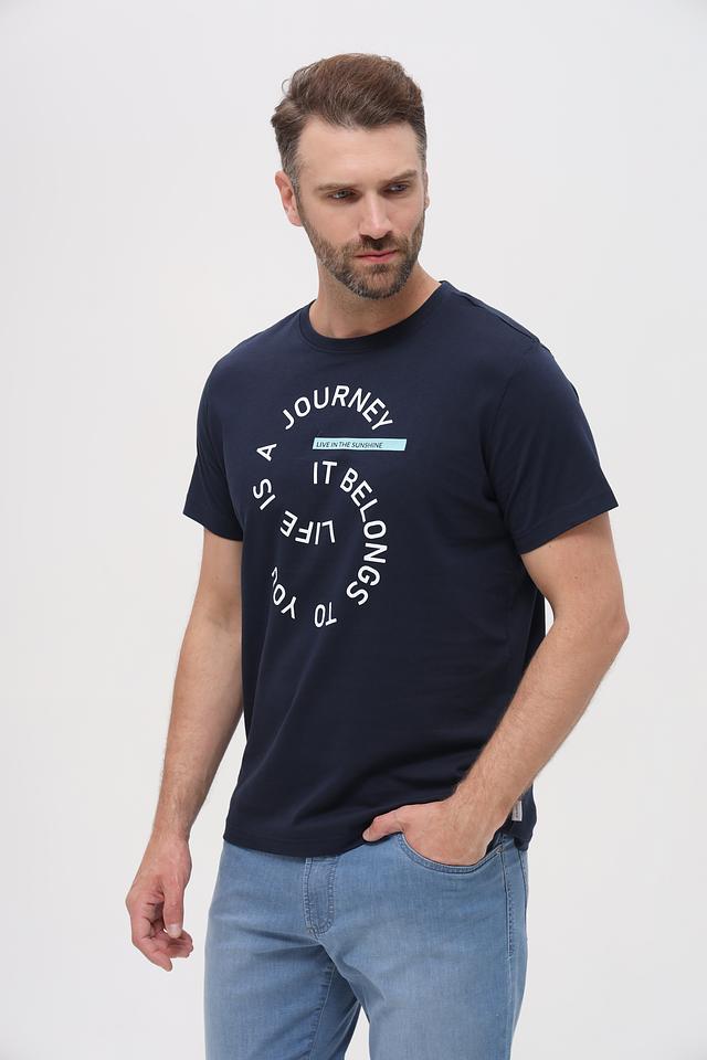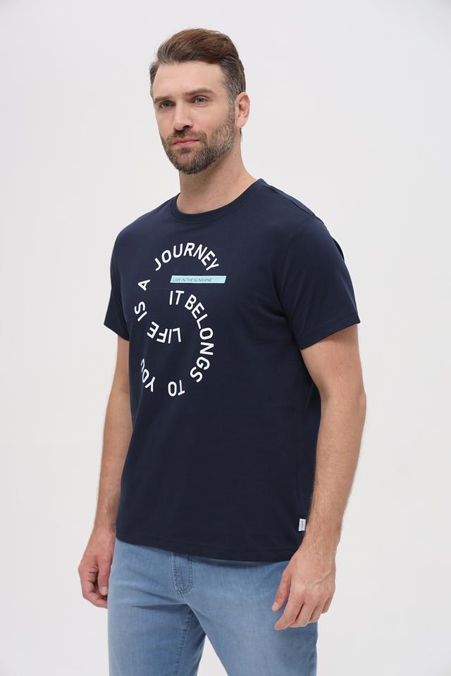 Мужская футболка Basefield темно-синего цвета с оригинальным круглым принтом "Journey". Изготовлена из 100% хлопка, обеспечивающего комфорт и воздухопроницаемость. Стильный и удобный выбор для повседневной носки. Состав: хлопок 100%
