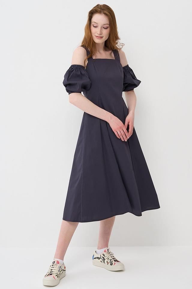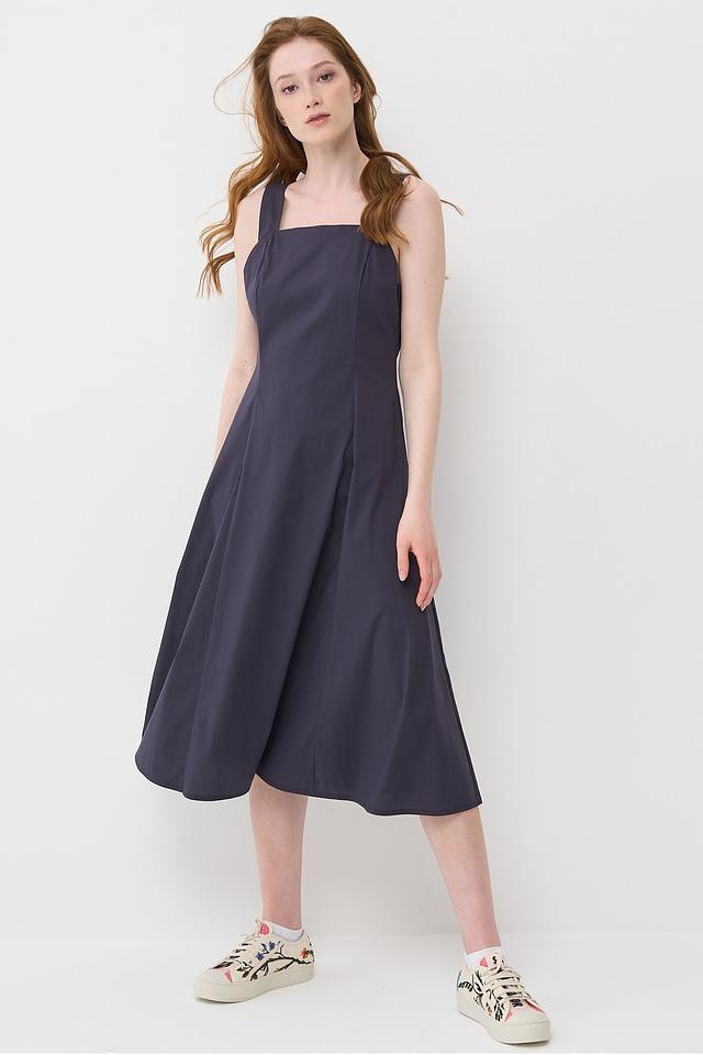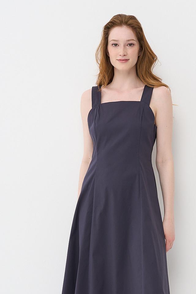 Тёмно-синее платье BE YOU на тонких бретелях – элегантный выбор для летнего гардероба. Платье имеет квадратный вырез и расклешенную юбку, создавая женственный силуэт. Модель с открытыми плечами добавит образу лёгкости и непринуждённости. Состав: